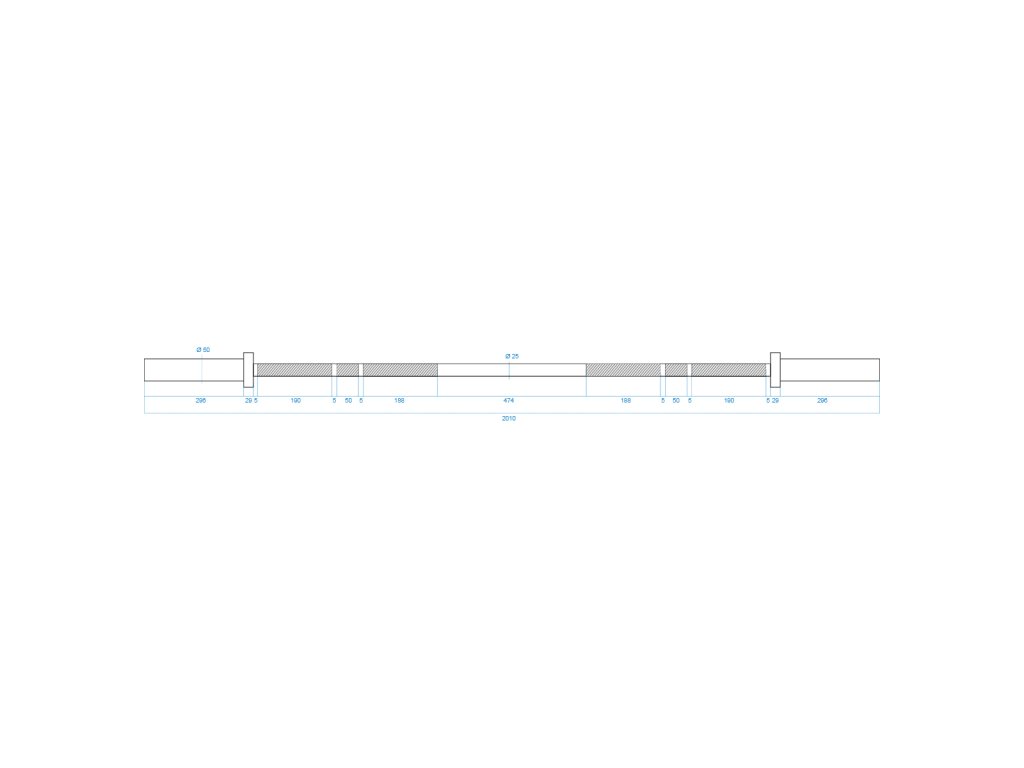 Priemer úchopovej časti je 25 mm a zaisťuje vysokú odolnosť a pohodlie počas tréningu. Použitý proces chrómovanie hriadeľa je zárukou zachovania jej vzhľadu po dlhú dobu jej používania a tiež je najlepšou ochranou proti korózii.