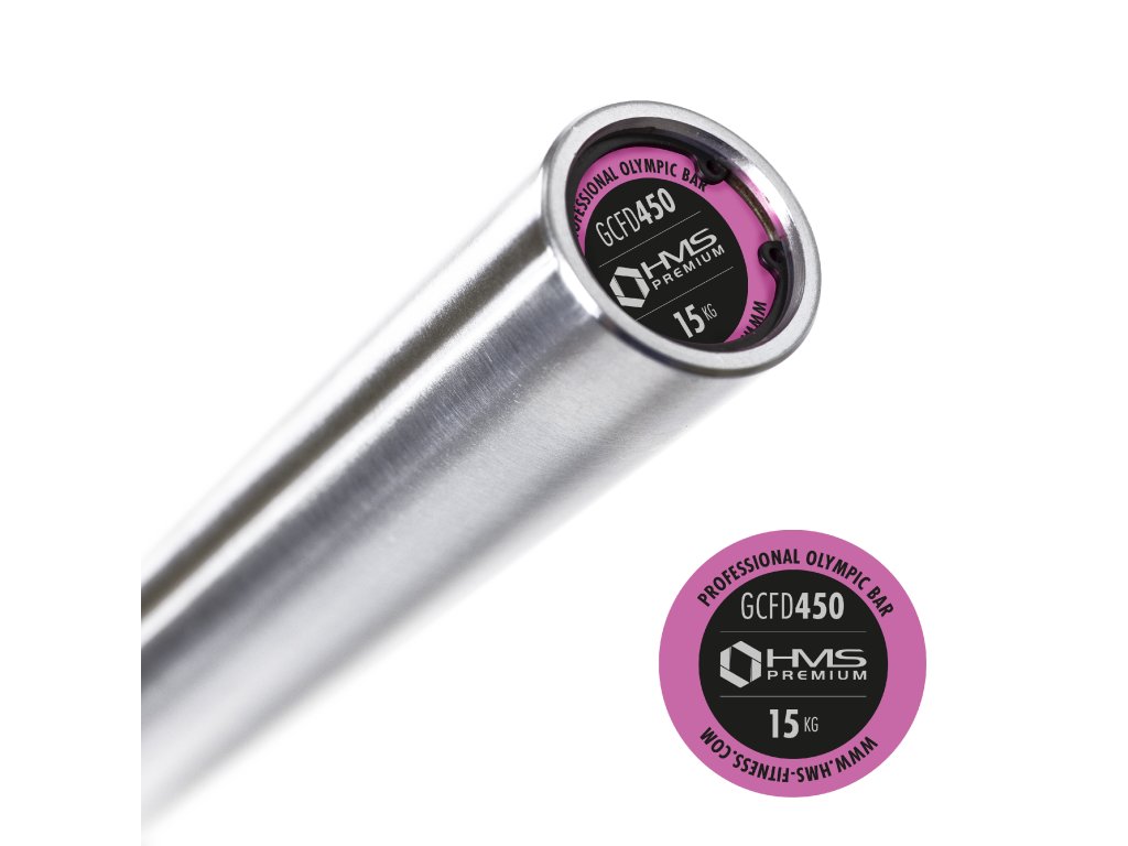 Olympijská os GCF450 HMS PREMIUM bola vyrobená zo špeciálnej chrómovanej ocele, ktorá prešla procesom kalenie. Produkt HMS sa vyznačuje pevnosťou v kombinácii s dokonalou pružnosťou. Súčasťou súpravy sú dva plastové uzávery ZG1000. Pevné a pohodlné uchopenie hriadeľa je zabezpečené vrúbkovaním na povrchu. Maximálne zaťaženie je 450 kg.