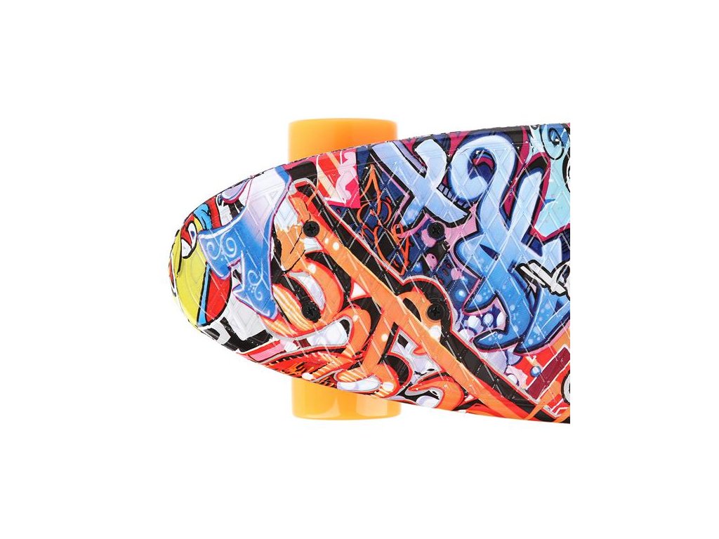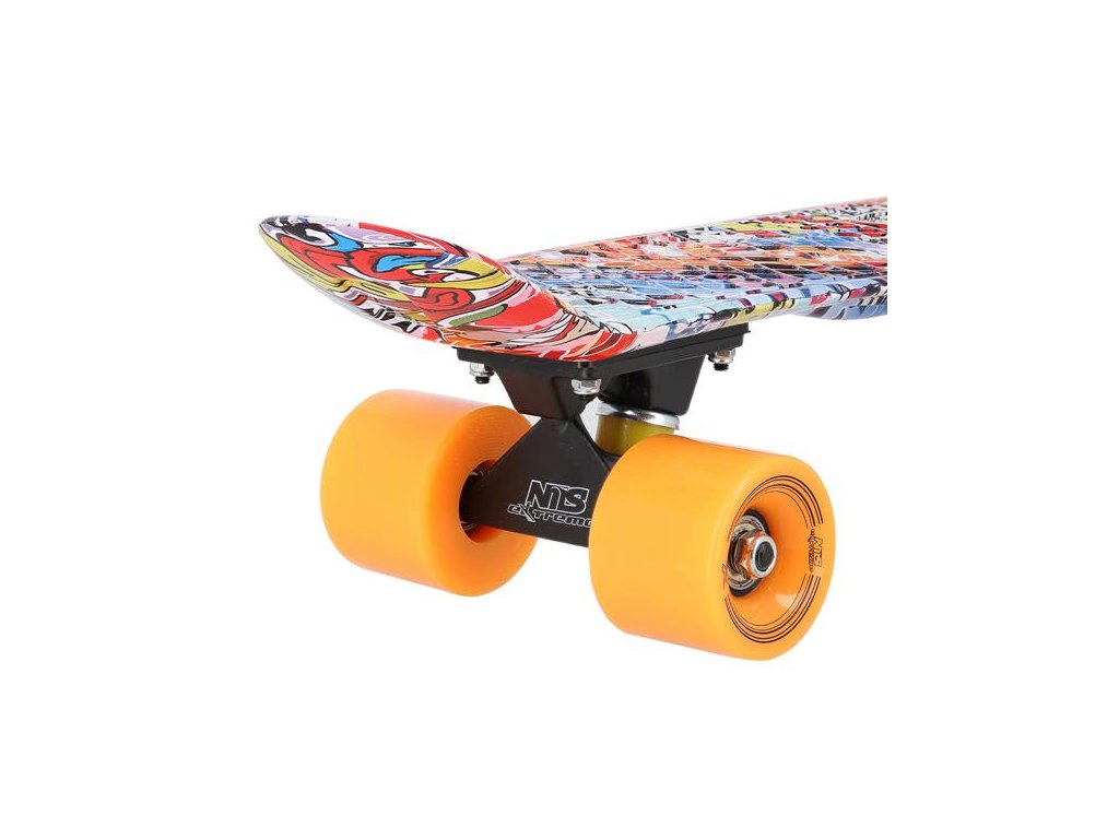 PennyBoard NILS Extreme Art Graffiti 2 je vyrobený z plastu typu polypropylénu PP. Použitím tohto typu materiálu má za následok veľkú silu skateboardu, väčšie než u bežných skateboardov z preglejky. Horná strana je vo forme mriežky, zabraňuje skĺznutiu.
