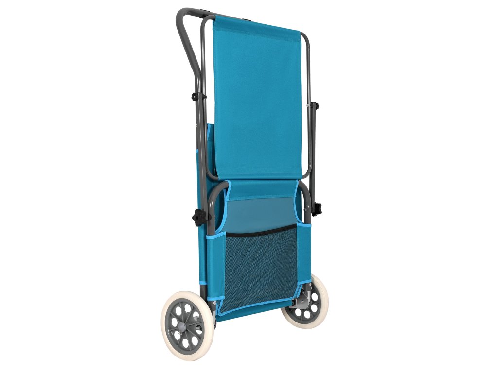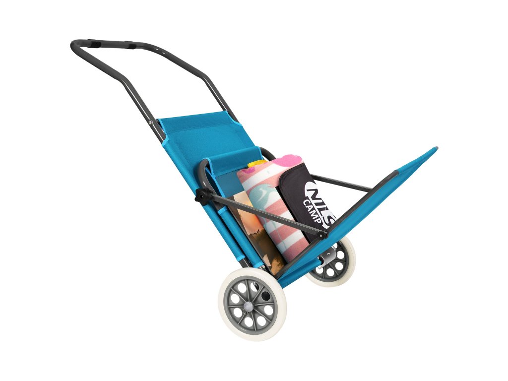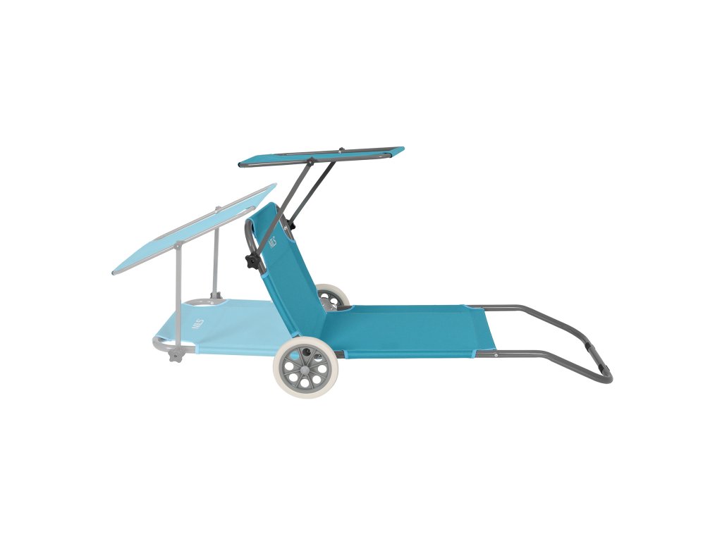 Na zadnej časti konštrukcie sú umiestnené dve transportné kolieska, ktoré výrazne uľahčujú presun lehátka. Stačí ľahko zdvihnúť prednú časť a viesť ho ako kufor – bez nutnosti zdvíhania alebo demontáže. To je obzvlášť užitočné na pláži, v kempe alebo keď je potrebné rýchlo presunúť lehátko na slnečnejšie či zatienené miesto.