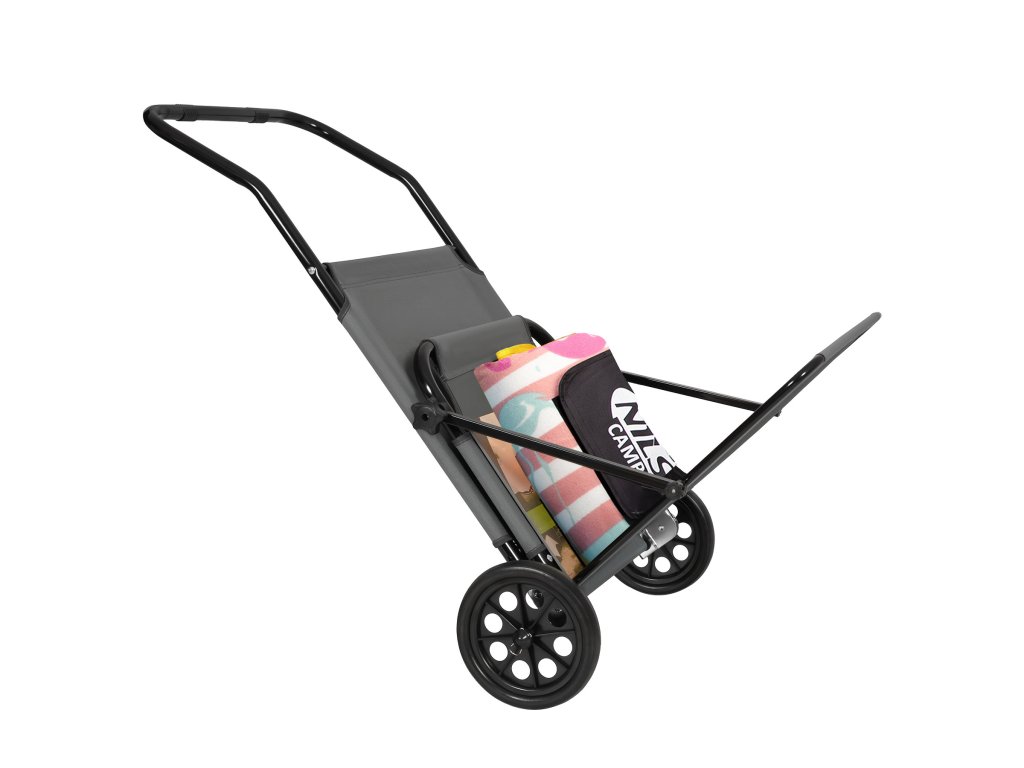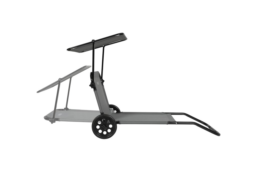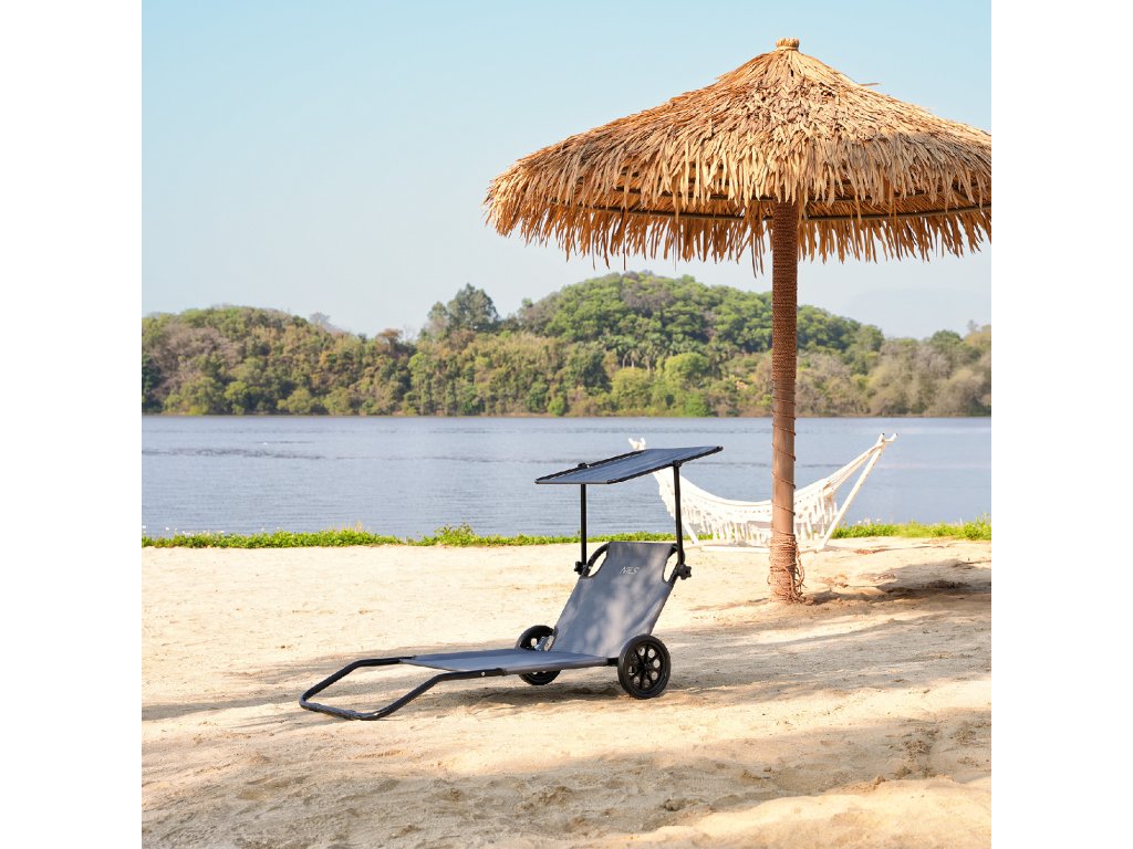 Na zadnej časti konštrukcie sú umiestnené dve transportné kolieska, ktoré výrazne uľahčujú presun lehátka. Stačí ľahko zdvihnúť prednú časť a viesť ho ako kufor – bez nutnosti zdvíhania alebo demontáže. To je obzvlášť užitočné na pláži, v kempe alebo keď je potrebné rýchlo presunúť lehátko na slnečnejšie či zatienené miesto.