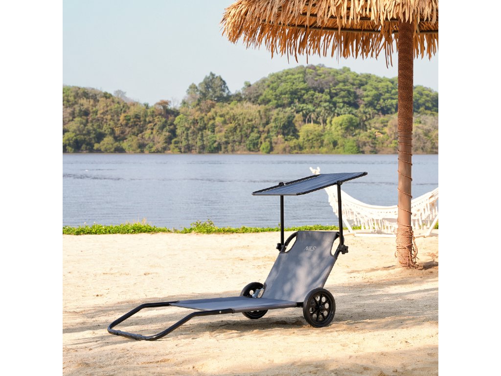 Plážové lehátko s tienidlom NILS Camp NC3307 sivé