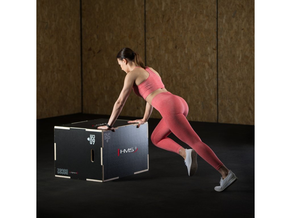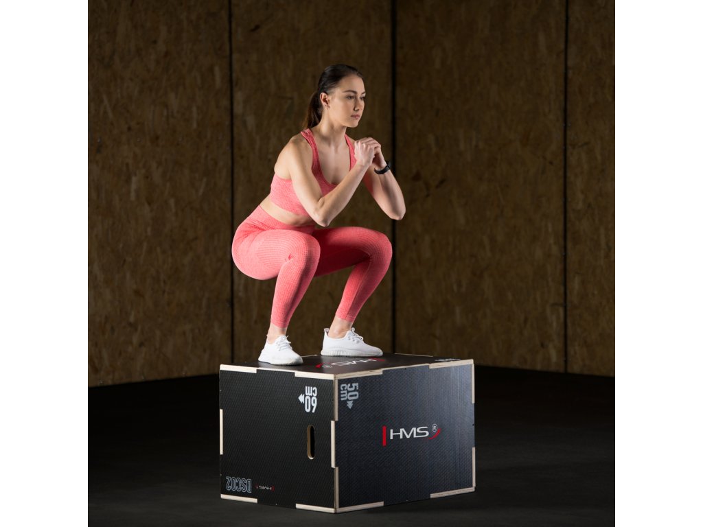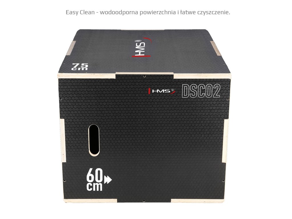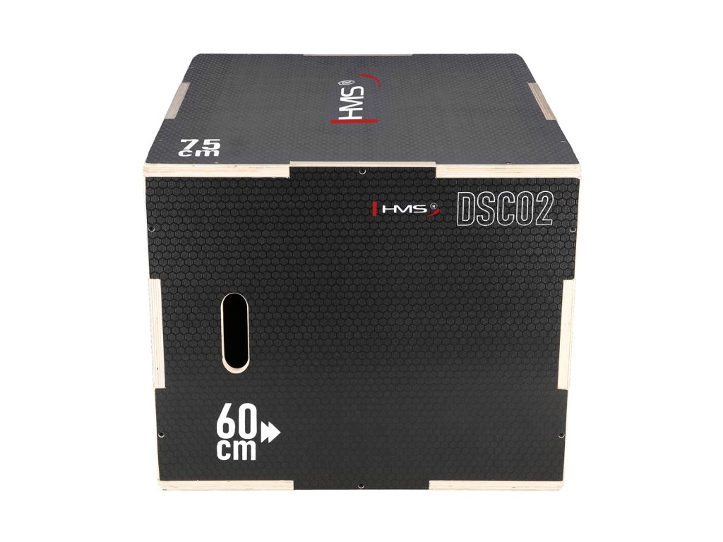 Plyometrické box HMS DSC02 je debna určená pre kondičný tréning. Box je neoddeliteľnou súčasťou každého tréninkového centra, pomôckou profesionálnych športovcov alebo aj atlétov. Vyrobený je z 18 mm preglejky a má klasické rozmery 75 x 60 x 50 cm (30 x 24 x 20 palcov) ..