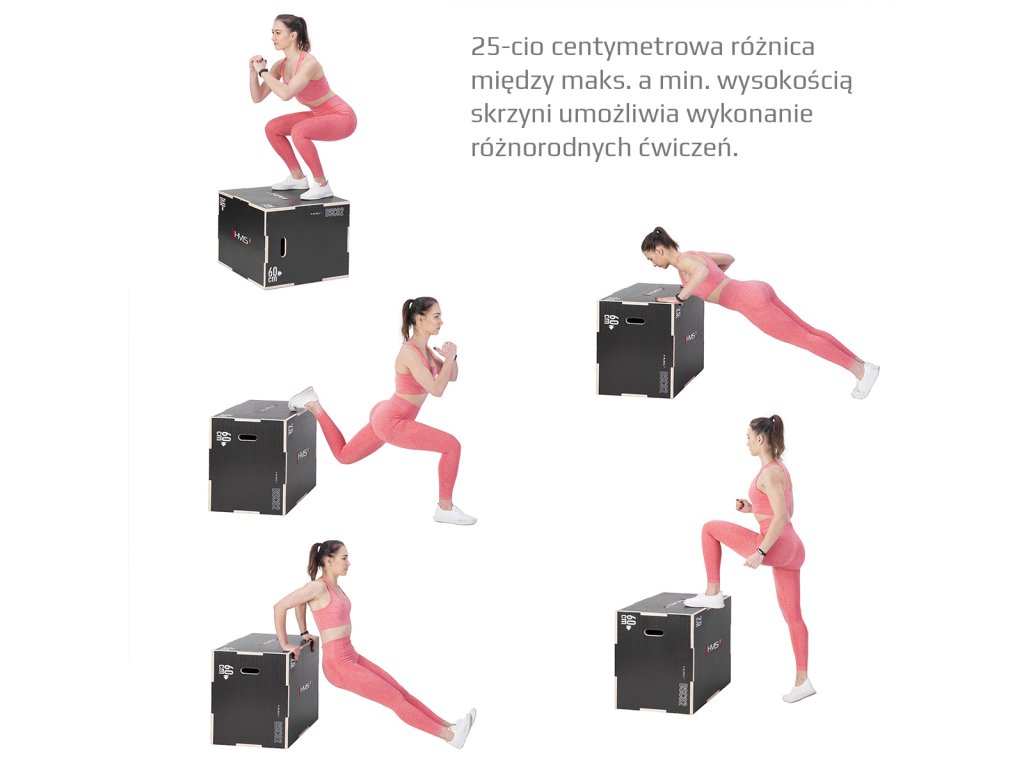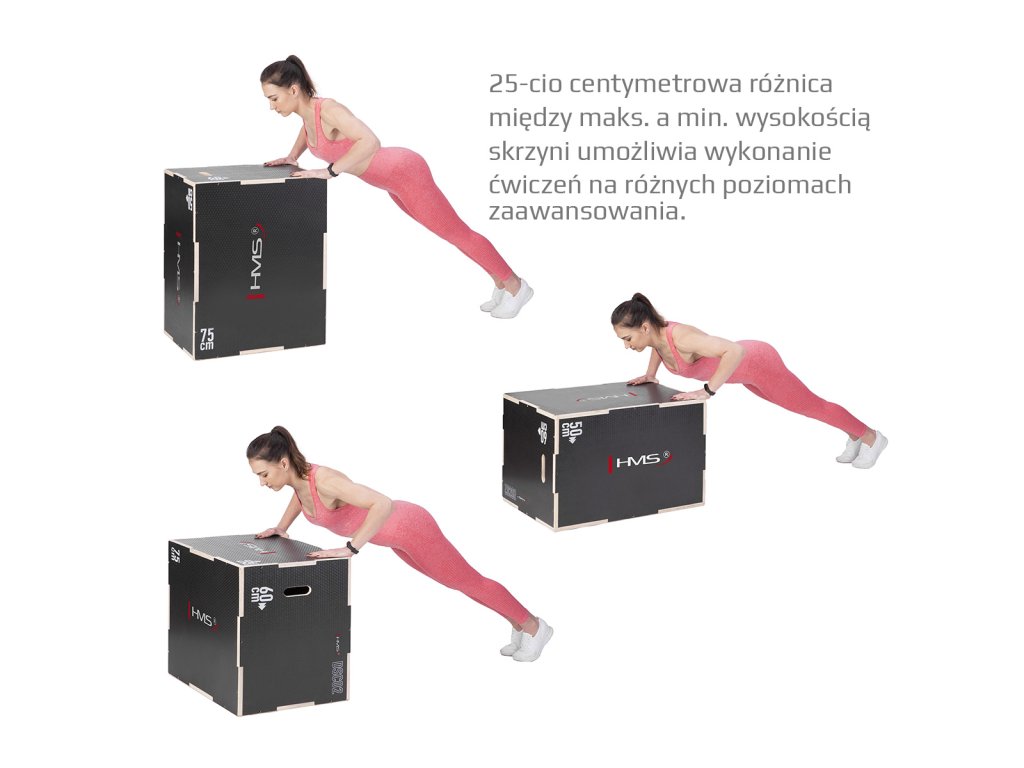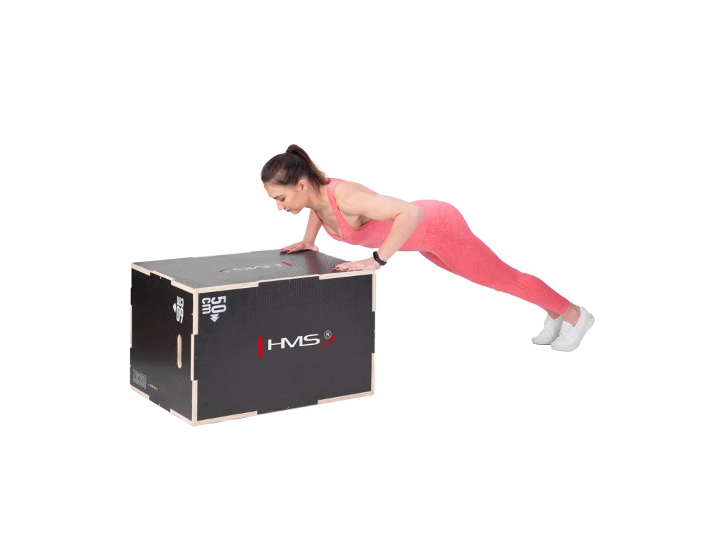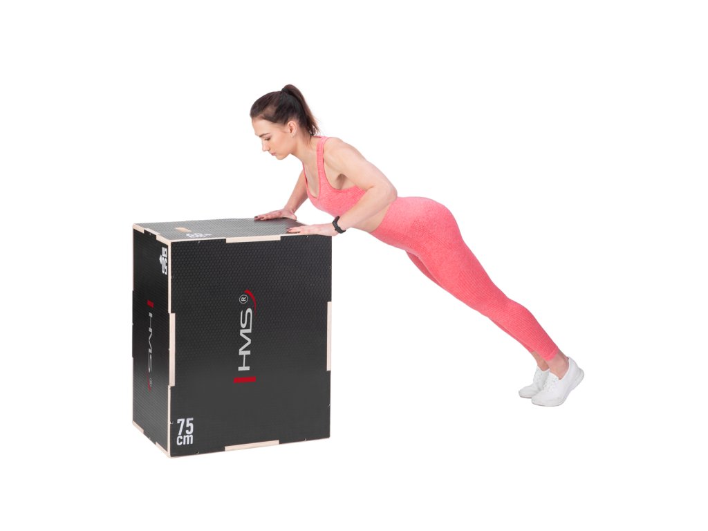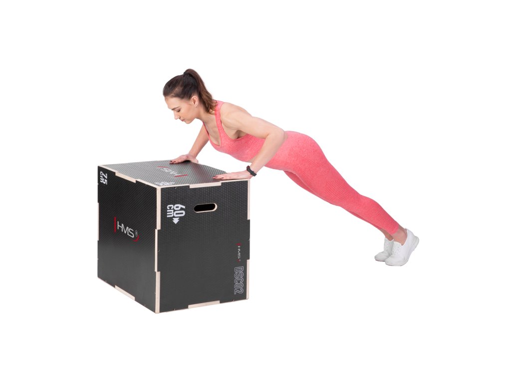 Plyometrické box HMS DSC02 je debna určená pre kondičný tréning. Box je neoddeliteľnou súčasťou každého tréninkového centra, pomôckou profesionálnych športovcov alebo aj atlétov. Vyrobený je z 18 mm preglejky a má klasické rozmery 75 x 60 x 50 cm (30 x 24 x 20 palcov) ..