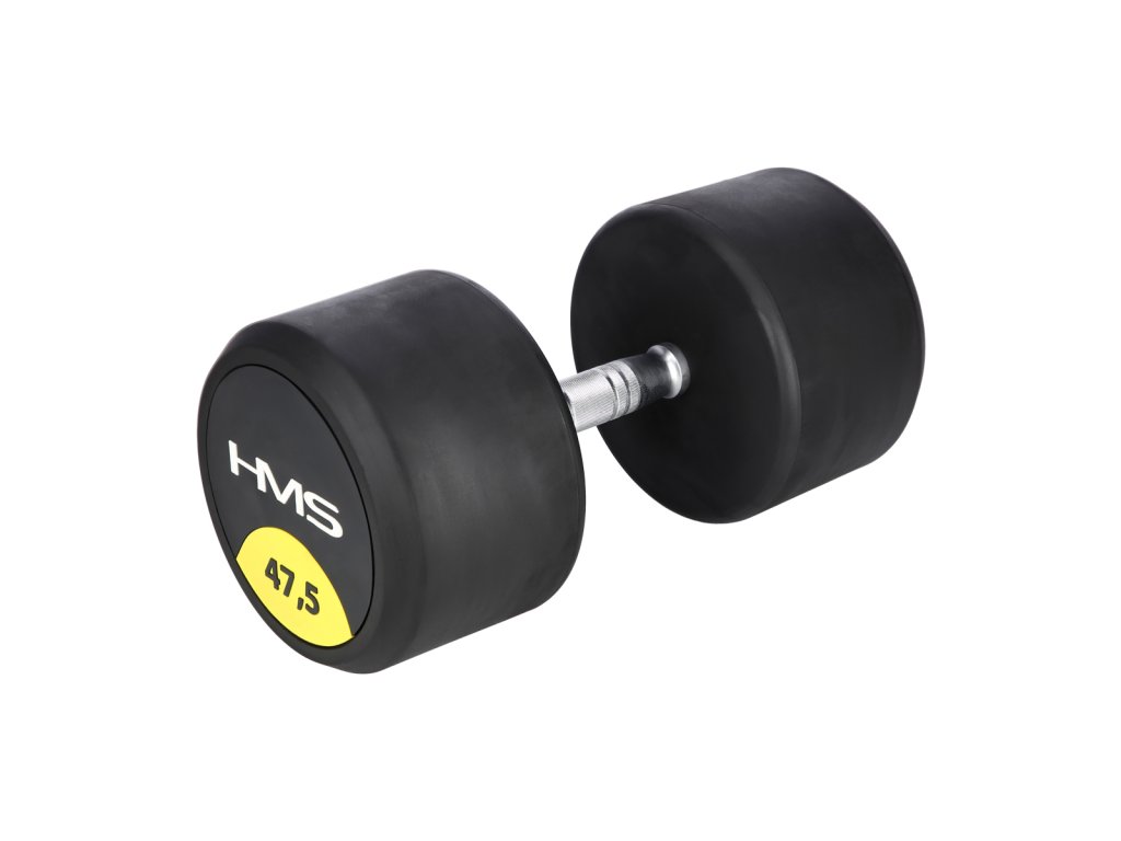 47,5 kilogramová jednoručná činka HMS HG Pro je určená pre profesionálne použitie ako doma tak v posilňovni. Závažie tvorí liatinový odliatok pokrytý hrubou vrstvou gumy, ktorá ochráni ako činku, tak podklad pred poškodením. Na čelnej strane je značka HMS a údaj o hmotnosti v kilogramoch. Rukoväť je vyrobená z chrómovanej ocele, pre pohodlný úchop má súdkovitý tvar s vrúbkovaným povrchom.