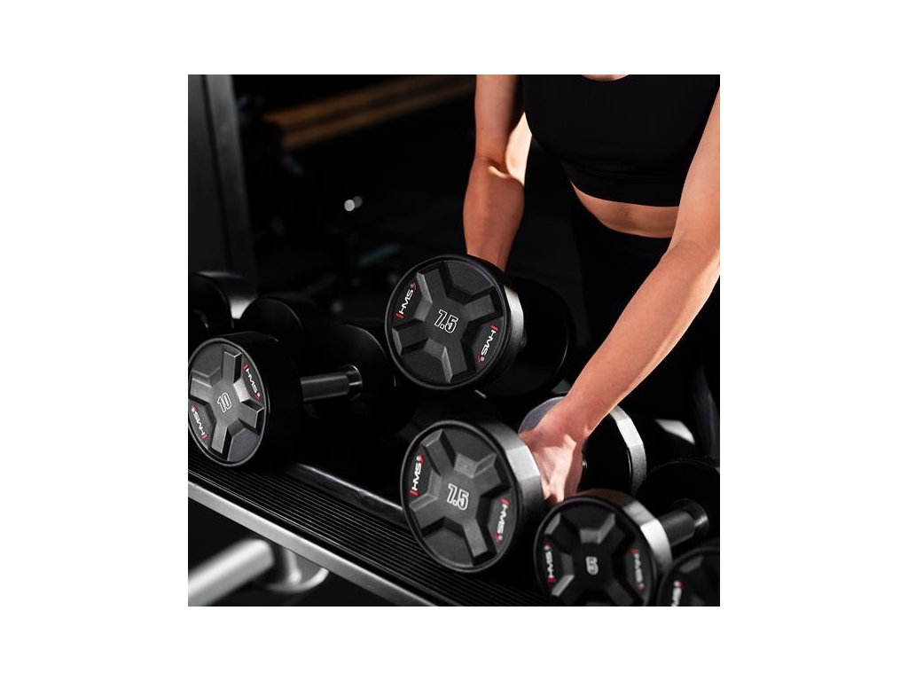 Jednoručné činky HMS HPC sú vyrobené z oceľového jadra potiahnutého liatym polyuretánom (CPU). HPC sú vybavením vytvoreným s ohľadom na najnáročnejších užívateľov. Výnimočná odolnosť, estetické prevedenie a pokročilé vlastnosti z nich robí ideálnu voľbu pre tých, ktorí očakávajú spoľahlivosť počas intenzívnych tréningov.