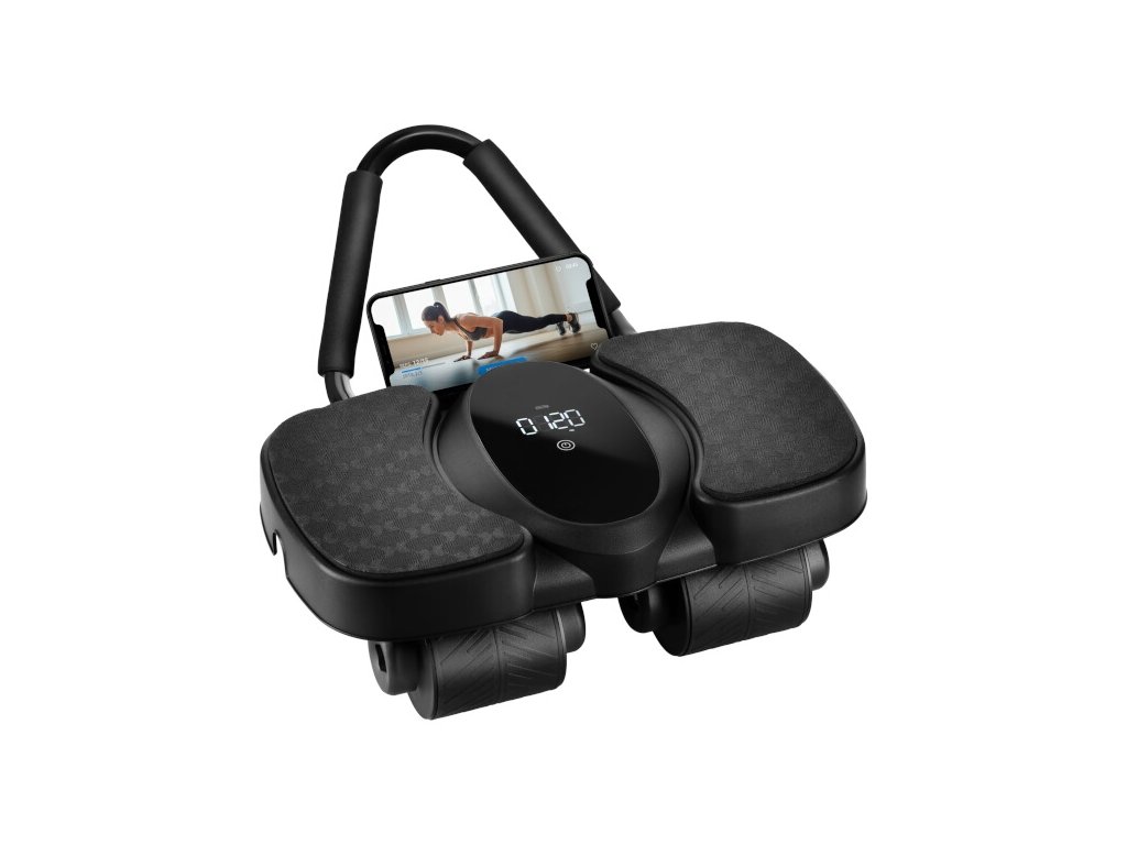 Štyri gumové, protišmykové kolesá zabezpečujú plynulý pohyb aj na hladkej podlahe. Konštrukcia rovnomerne rozkladá tlak, vďaka čomu efektívne posilňuješ core bez zbytočného zaťaženia ramien.