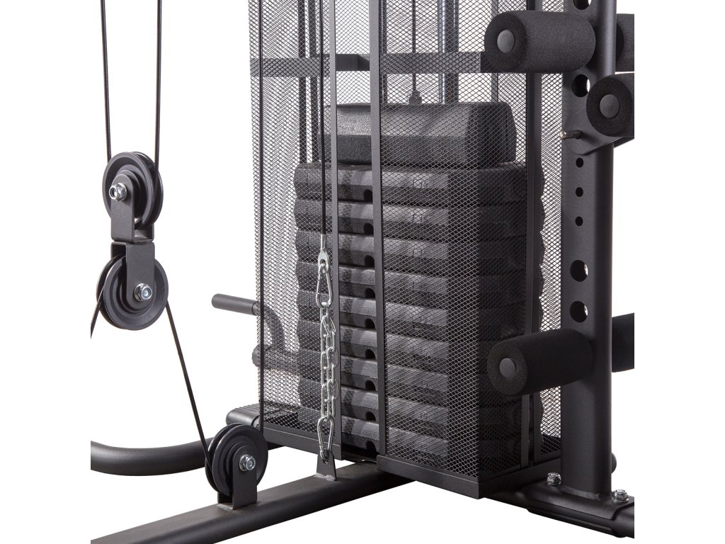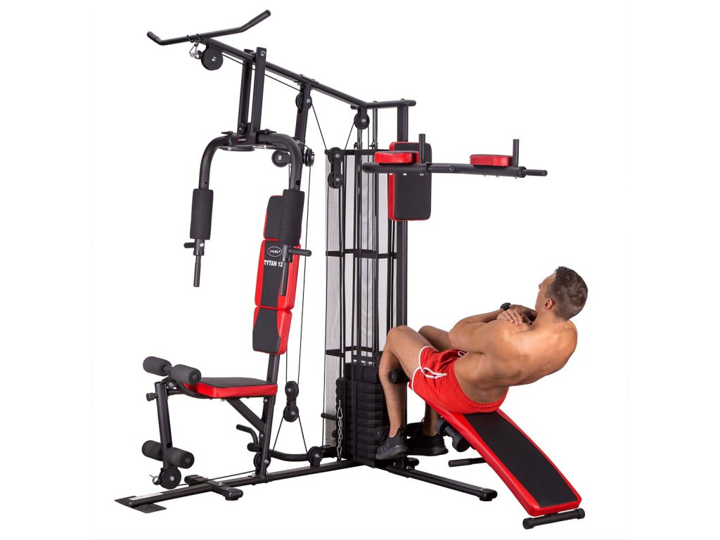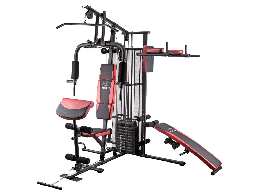 HMS Tytan 12 je moderná posilňovacia veža na komplexný silový tréning v domácom prostredí. Základom konštrukcie je súprava závaží, ktorá pozostáva z 9 tehál s hmotnosťou 7 kilogramov a hornej tehly s hmotnosťou 5 kilogramov, takže celková hmotnosť závaží je 68 kilogramov. Sada závaží je krytá drôtenou klietkou pre maximálnu bezpečnosť. Zaťaženie sa distribuuje medzi jednotlivé aktívne prvky pomocou sústavy nosných kladiek a oceľových lán: