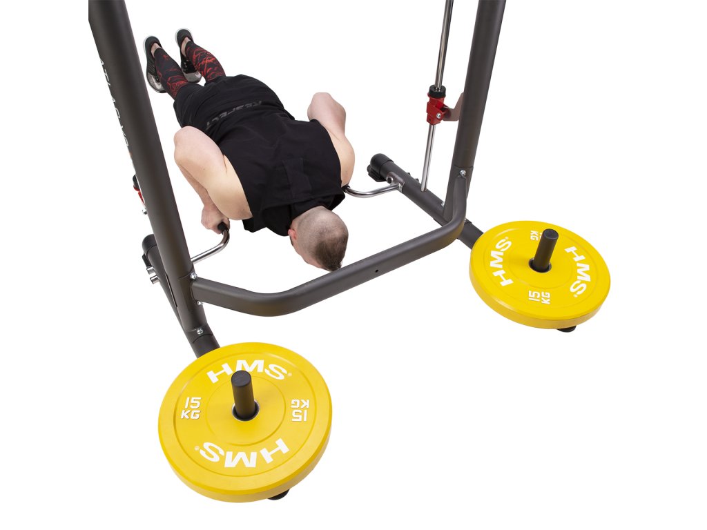 Konštrukcia Multipress HMS ATLAS X3 je vyrobená z kvalitnej ocele, ktorá umožňuje nosnosť až 136 kilogramov. Konštrukciou naviac dopĺňa demontovateľná zarážka nôh pre tréning sed ľahov a demontovateľné podpery na kľučky. V balení navyše nájdeme 4 plastové návleky na nakladacej a odkladacie tŕne, X3 je teda kompatibilný ako s bežnými, liatinovými kotúčmi, tak s olympijskými kotúčmi.