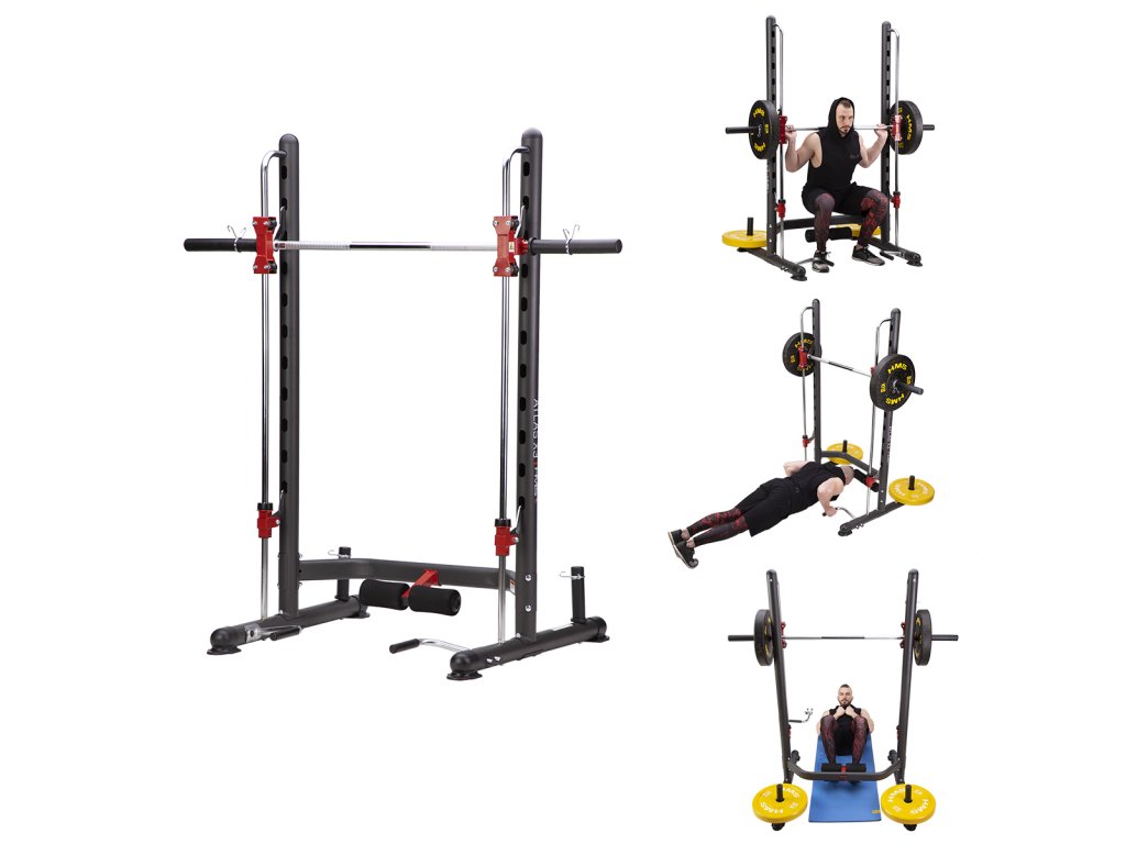 Multipress sa najčastejšie používa na drepovanie s osou na chrbte a na benchpress.