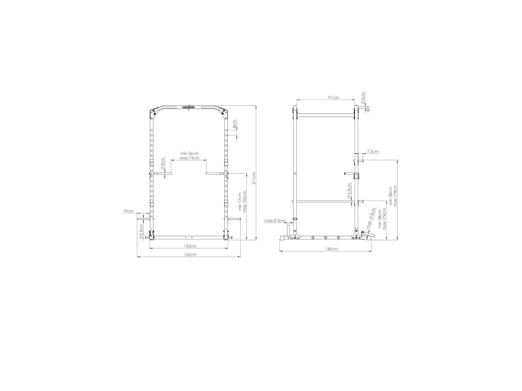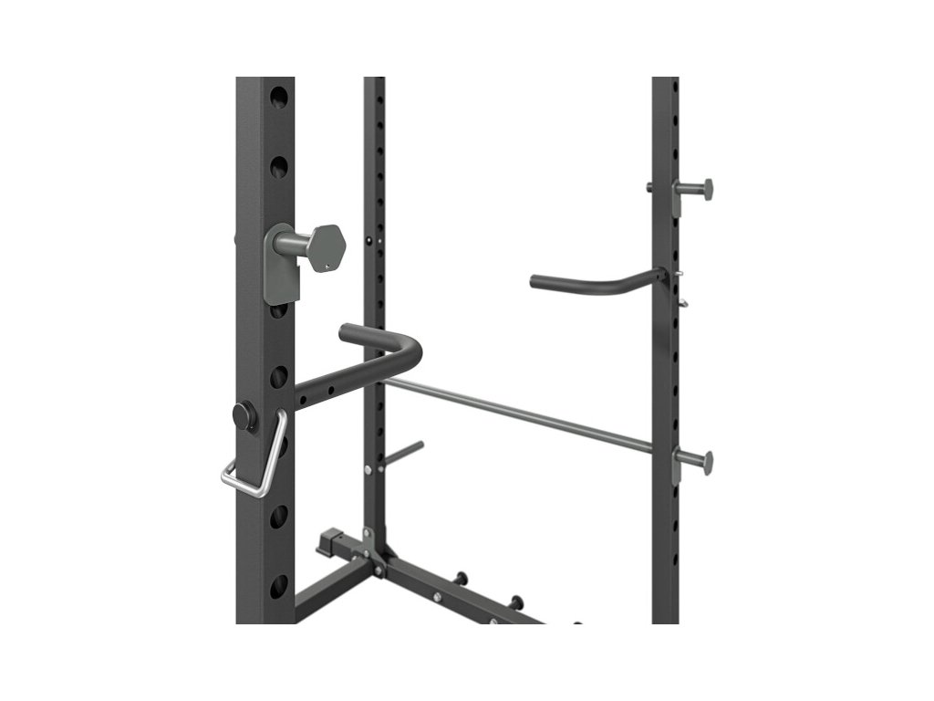 Stojan Power Rack MS-U112 2.0 je vybavený aj bočnými tyčami, ktoré slúžia ako bezpečnostný prvok napríklad pri bench presse alebo drepoch s činkou. Činky možno spustiť na bočné tyče, ak už nemôžete dokončiť aktuálnu zostavu.