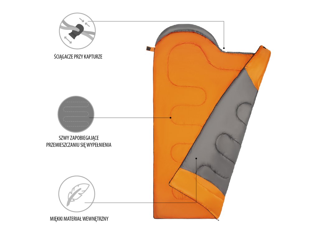 Spací vak je dodávaný v praktickom kompresnom obale s popruhmi, ktoré po stiahnutí ušetria približne 1/3 priestoru.