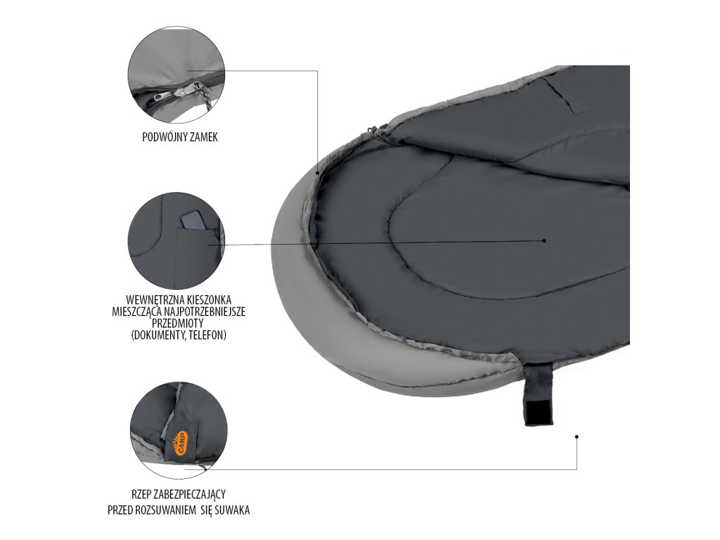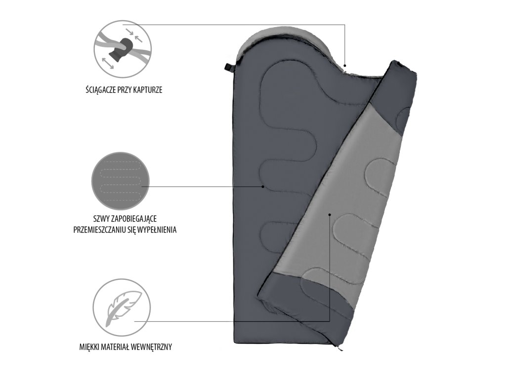 Spací vak je dodávaný v praktickom kompresnom obale s popruhmi, ktoré po stiahnutí ušetria približne 1/3 priestoru.