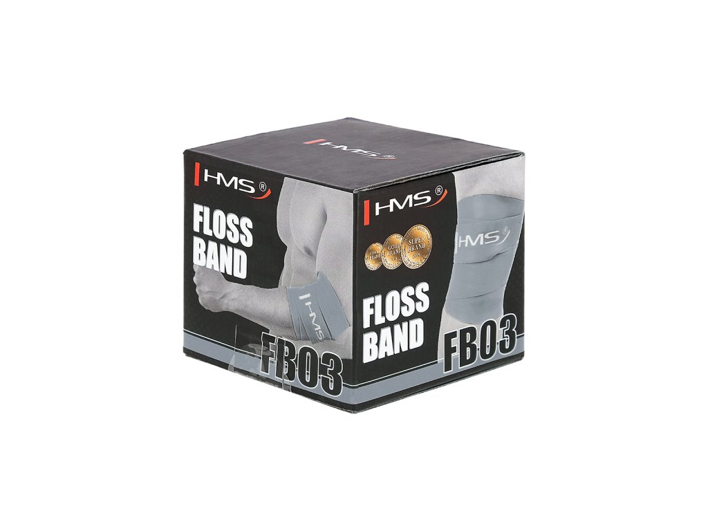 Gumová páska HMS FB03 sa používa na rehabilitáciu a takzvanému flossing, kedy sa kompresný páskou opakovane omotáva a povoľuje postihnuté miesto. Táto praktika pomáha preťahovať skrátené svaly a ťažko dostupné partie. Zmierňuje bolesť, zväčšuje rozsah pohybu a napomáha regeneráciu po tréningu.