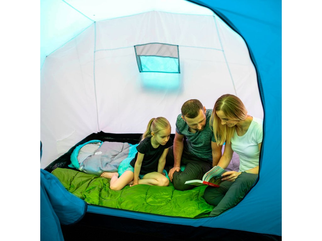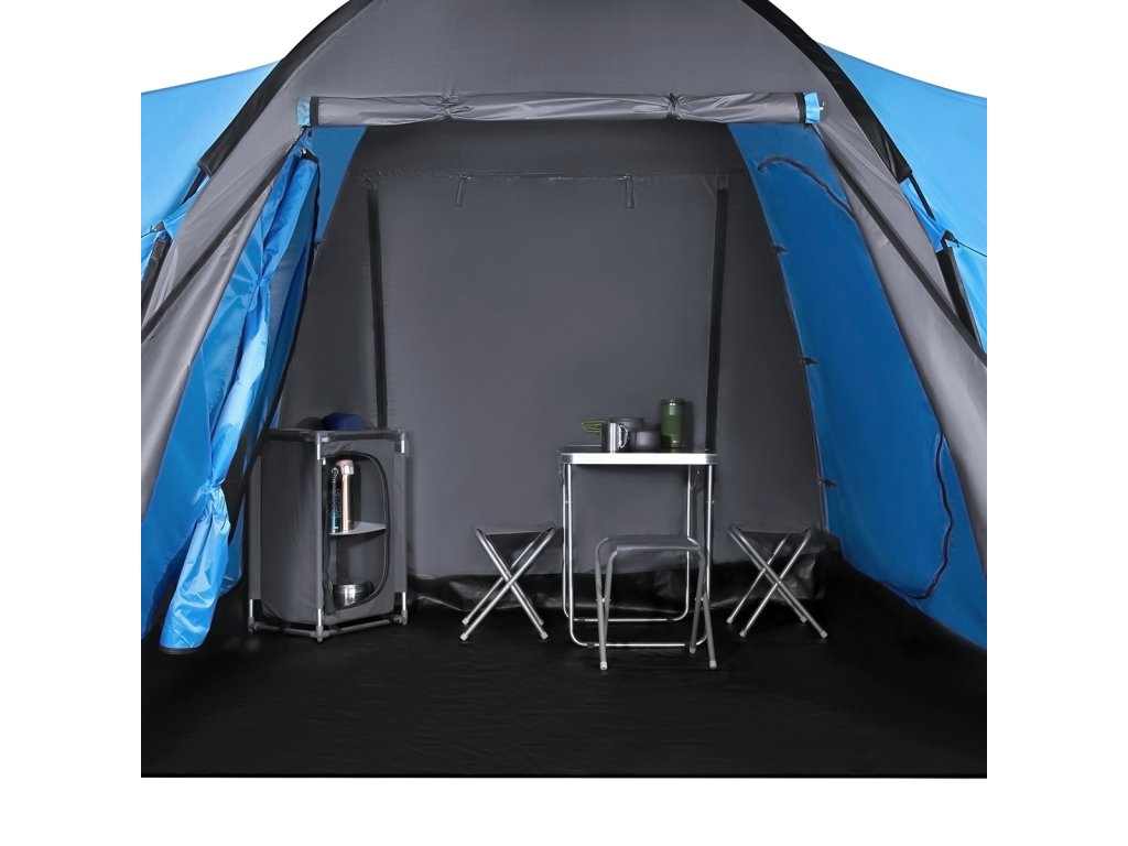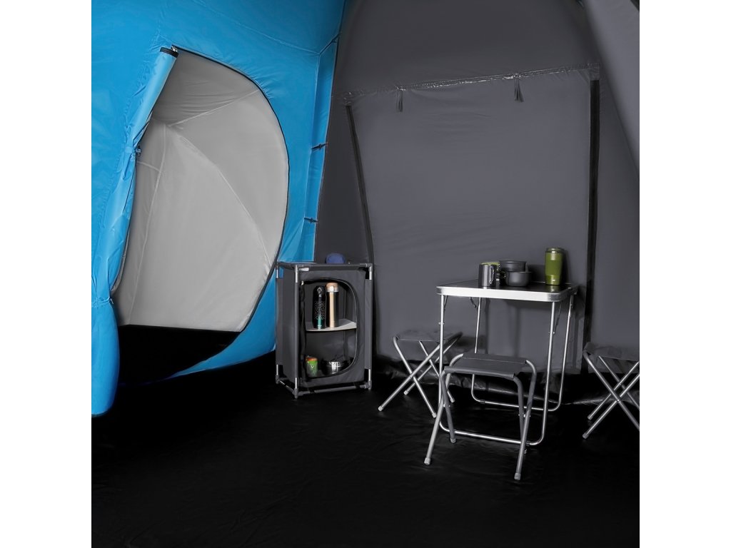Highland ponúka dve samostatné spálne, každú pre tri osoby, a veľkú predsieň s rozmermi 210 × 210 × 200 cm. To je dostatok priestoru na pohodlný pobyt vo vnútri stanu – či už odpočívate, alebo sa schovávate pred dažďom.