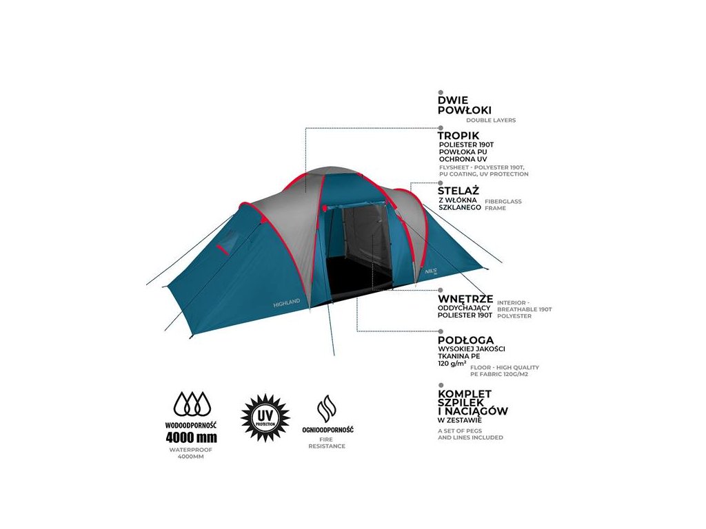 Rodinný stan NILS Camp NC6031 Highland modrý/svetlo šedý