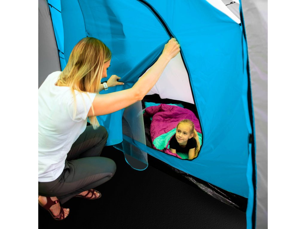 Navyše je stan vybavený štyrmi vnútornými vreckami, kam schováte svoje veci, a dvoma úchytmi pod stropom, vďaka ktorým môžete zavesiť lampu.