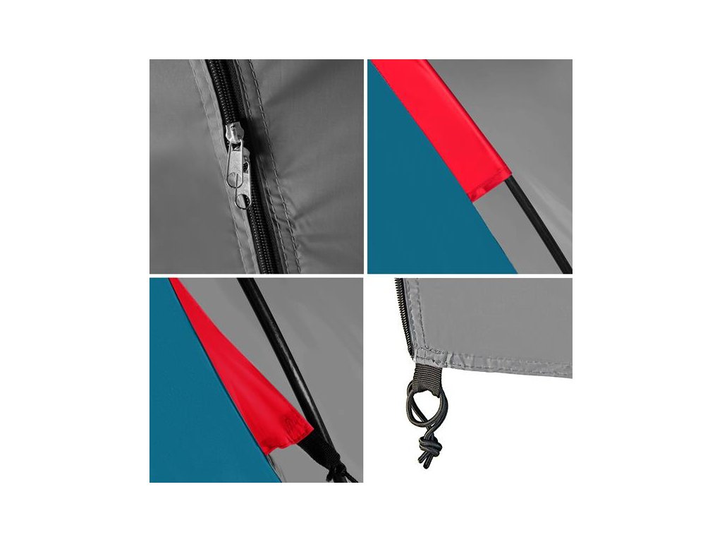Vysoký komfort odpočinku v náročných poveternostných podmienkach zaisťuje nepremokavá plachta a podlaha s vodeodolnou úpravou do 4000 mm H2O.