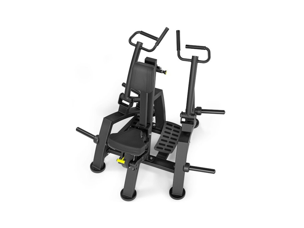Dve úrovne nastavenia operadla. Vďaka tomuto riešeniu si môžete počas tréningu nastaviť vzdialenosť od rukovätí. Ovládacie prvky sú vyrobené z 10 mm hrubého plechu, vďaka čomu je mechanizmus pevný a odolný.
