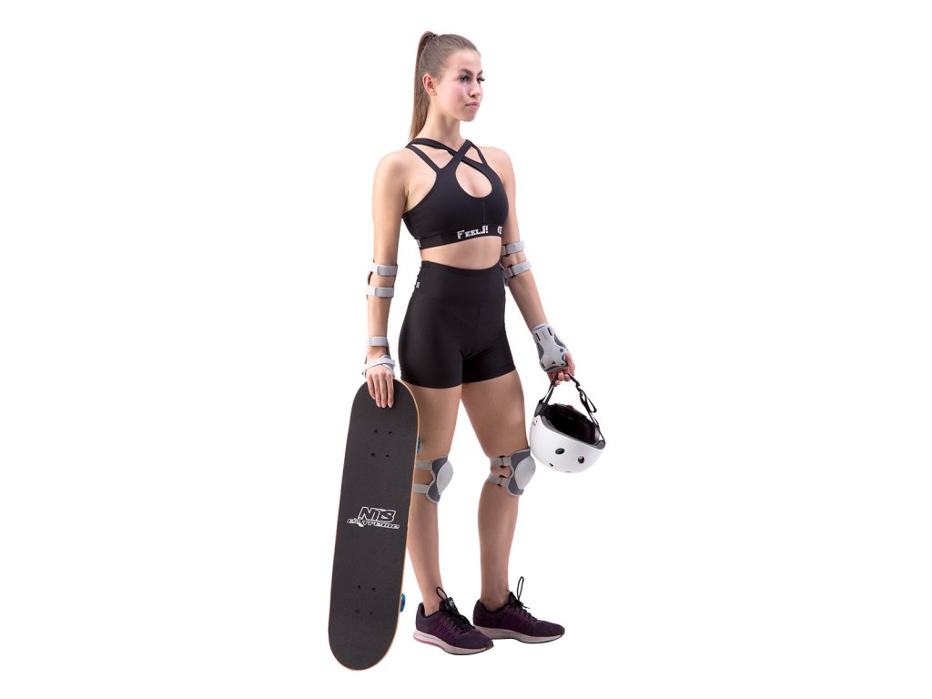 NILS Extreme H704 je kompletná sada chráničov zápästia, lakťov a kolien. Hlavnú ochranu tvorí plastový výlisok, ktorý je prišitý k mäkkej a pohodlnej podložke. Chrániče lakťov a zápästia sa upevňujú pomocou dvoch elastických pásikov so suchým zipsom. Chrániče zápästia sa pripevňujú pomocou pevných pásikov na suchý zips.