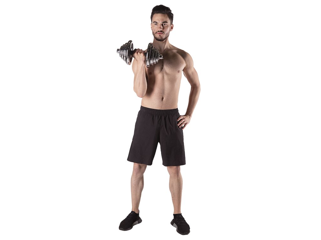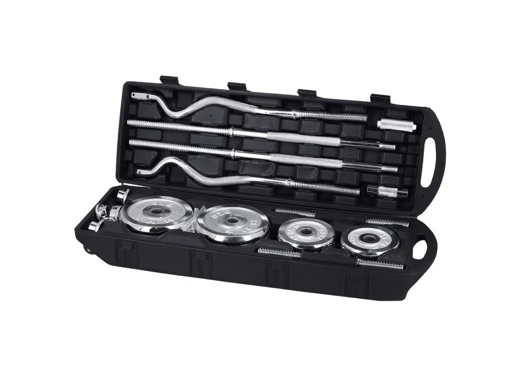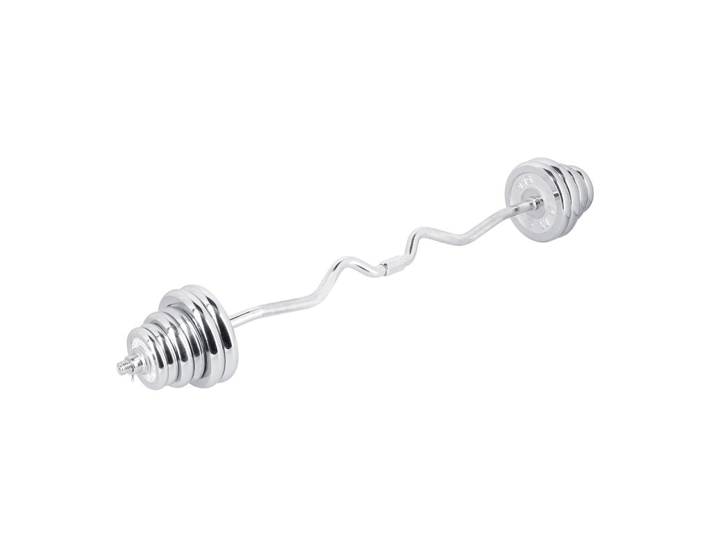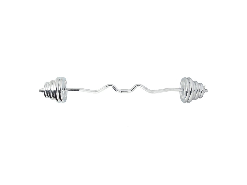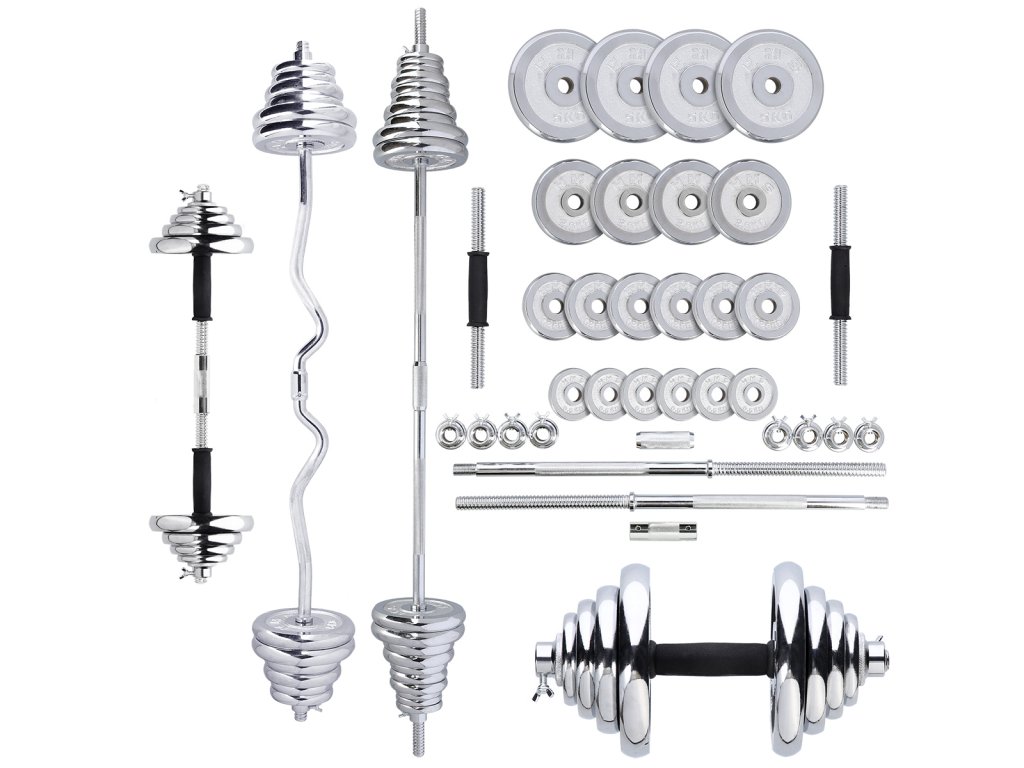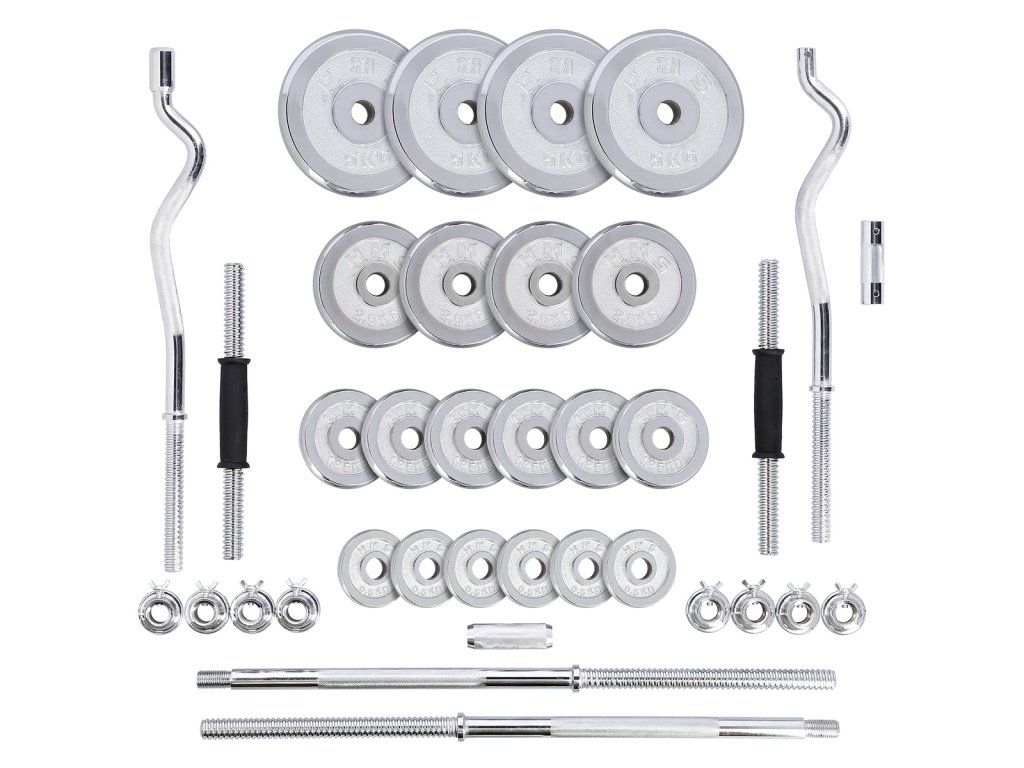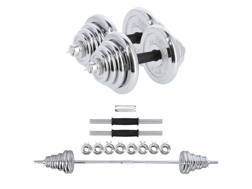 Činky sú vyrobené z kvalitnej chrómovanej ocele, ktorá zaručuje dlhú životnosť. Disky sú proti posunutiu zaistené skrutkovými zámkami, ktoré sú navyše zaistené skrutkou s krídlovou maticou.