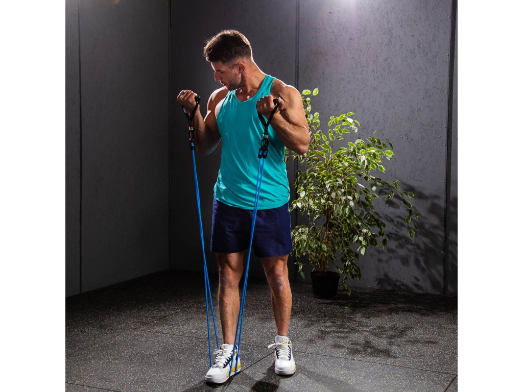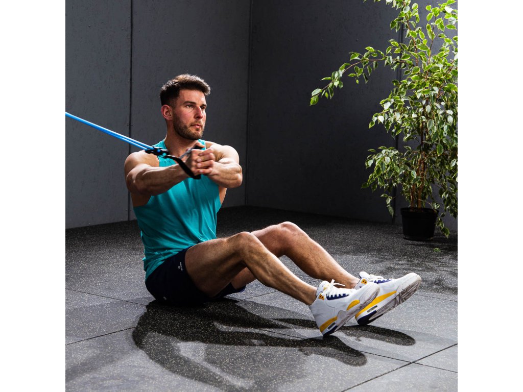 - Univerzálnosť – pridávajte ďalšie gumy pre zvýšenie odporu pomocou funkčných karabín, meňte uhol tréningu presunutím úchytu úchytu za dvere a striedajte cvičené končatiny výmenou rukovätí.