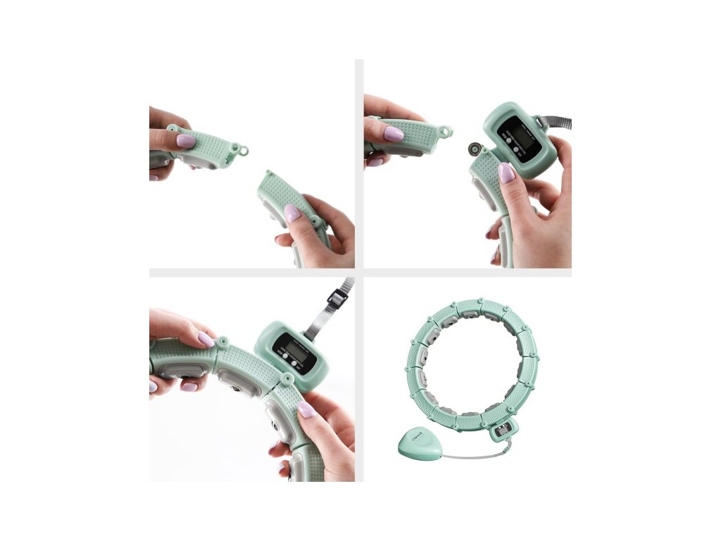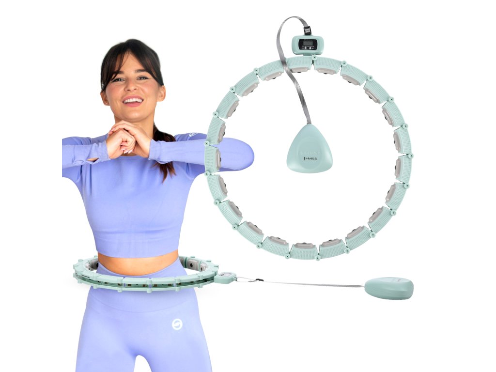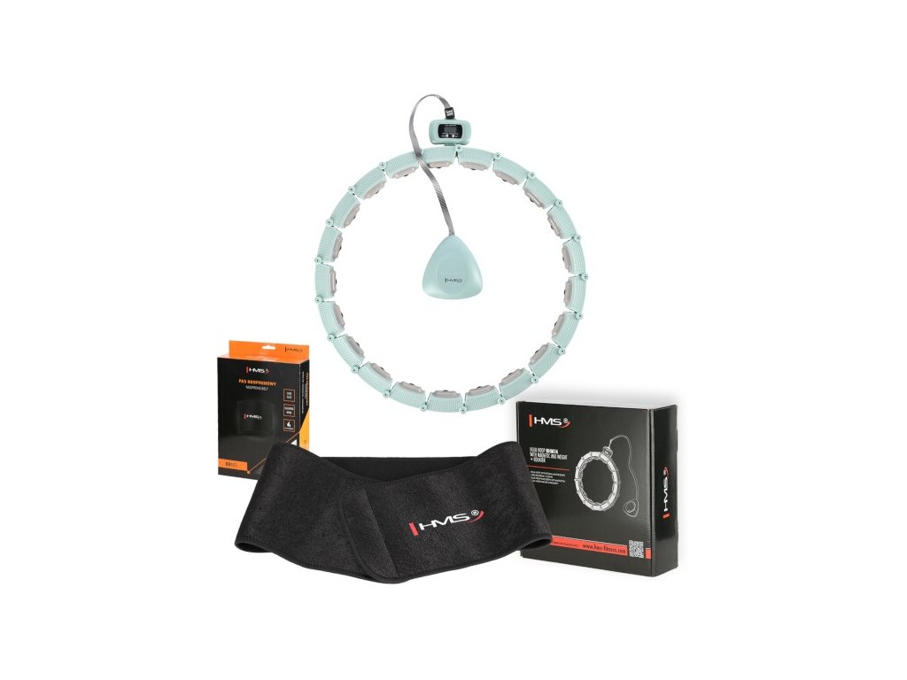 HMS HHM14 je obruč s nastaviteľnou dĺžkou, magnetickými masážnymi výstupkami a rotačným závažím.