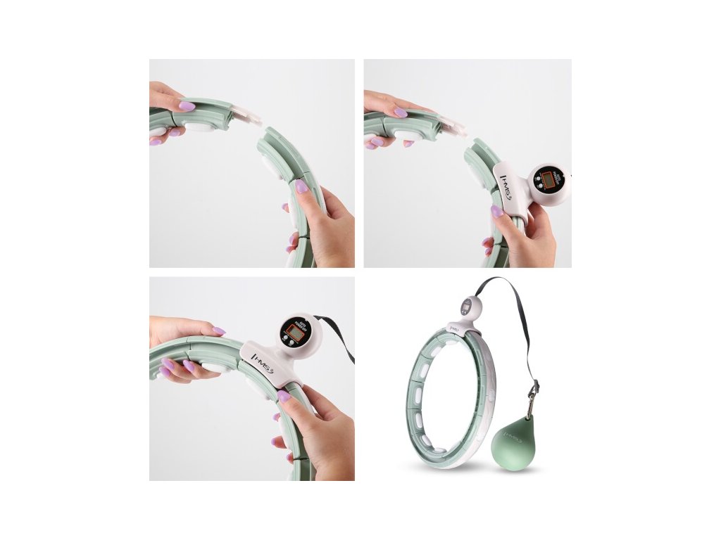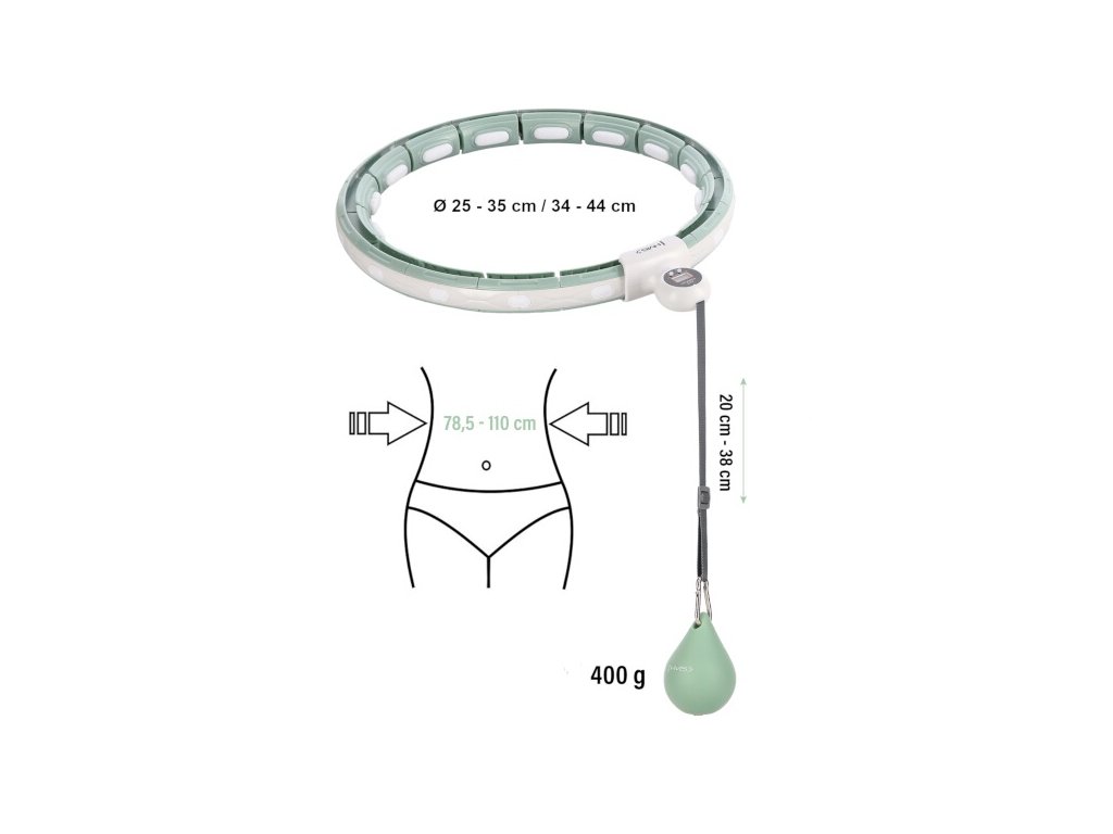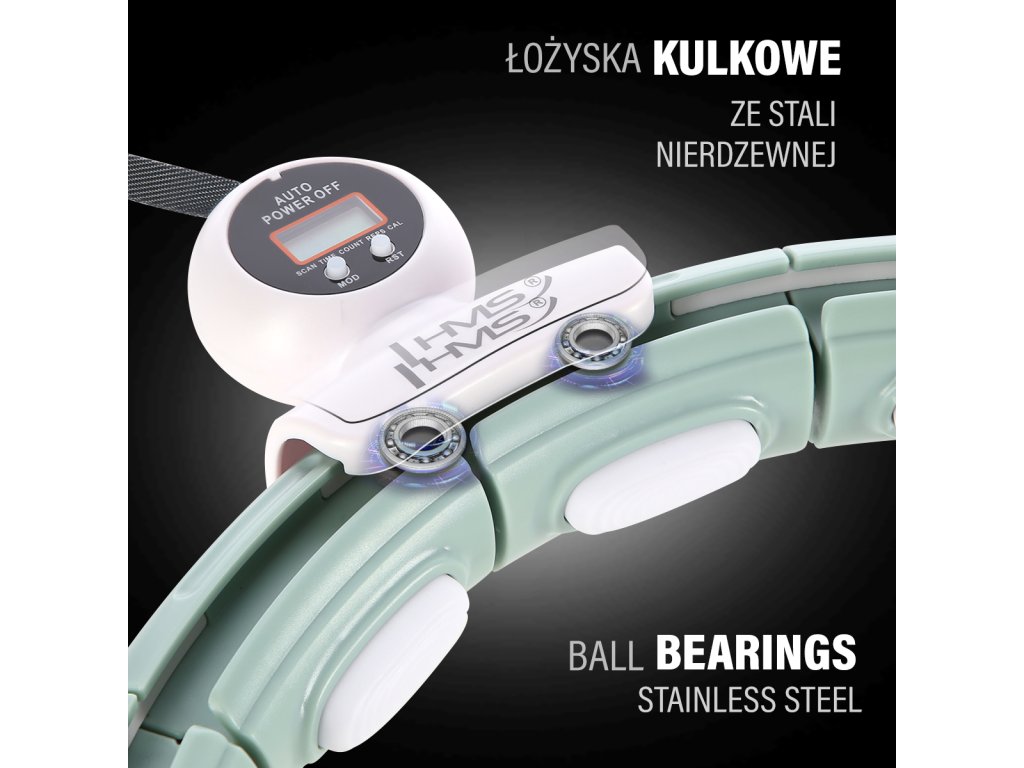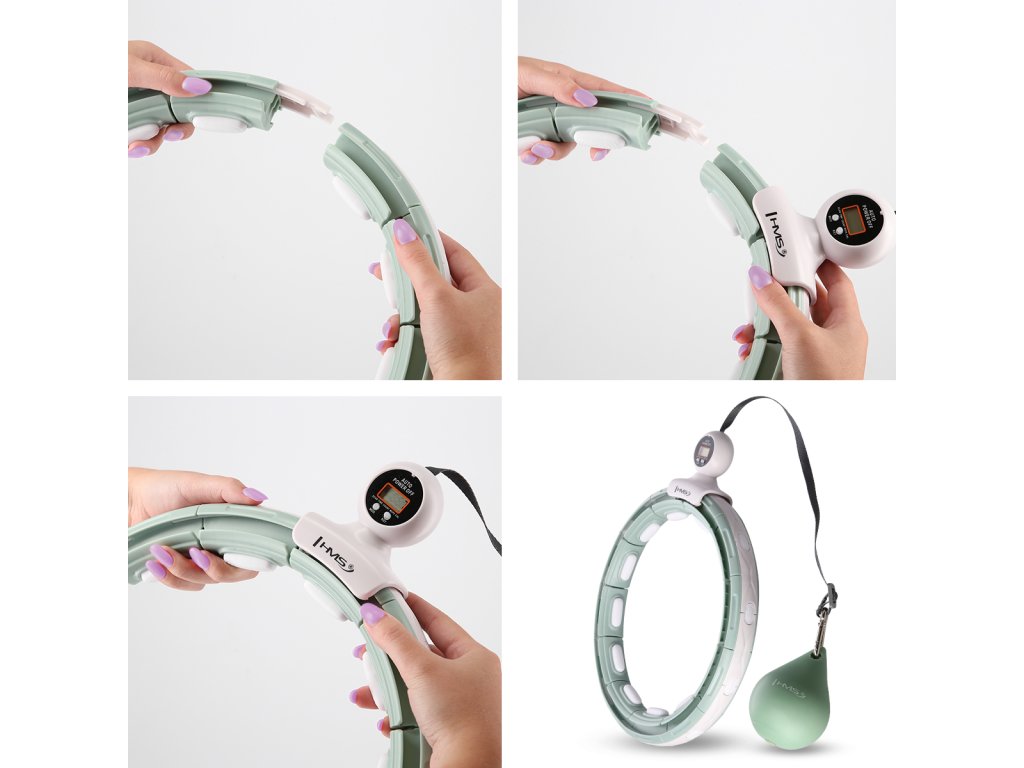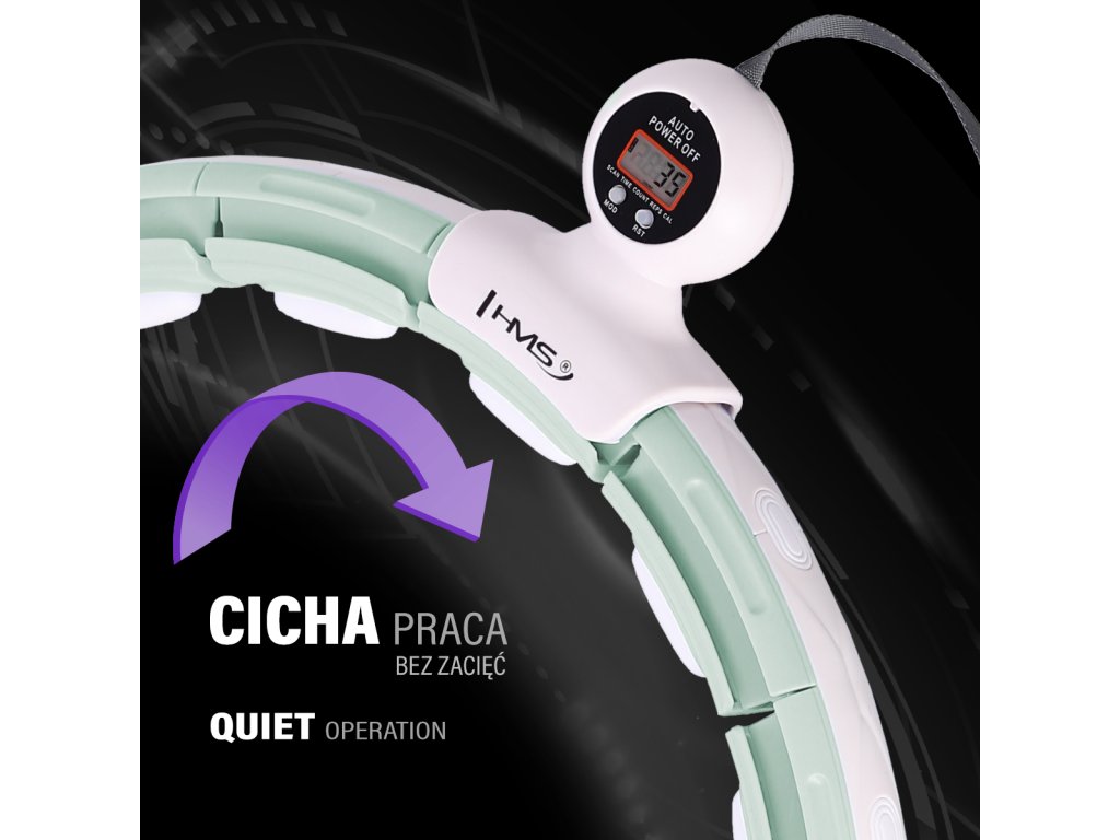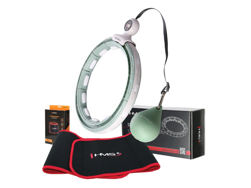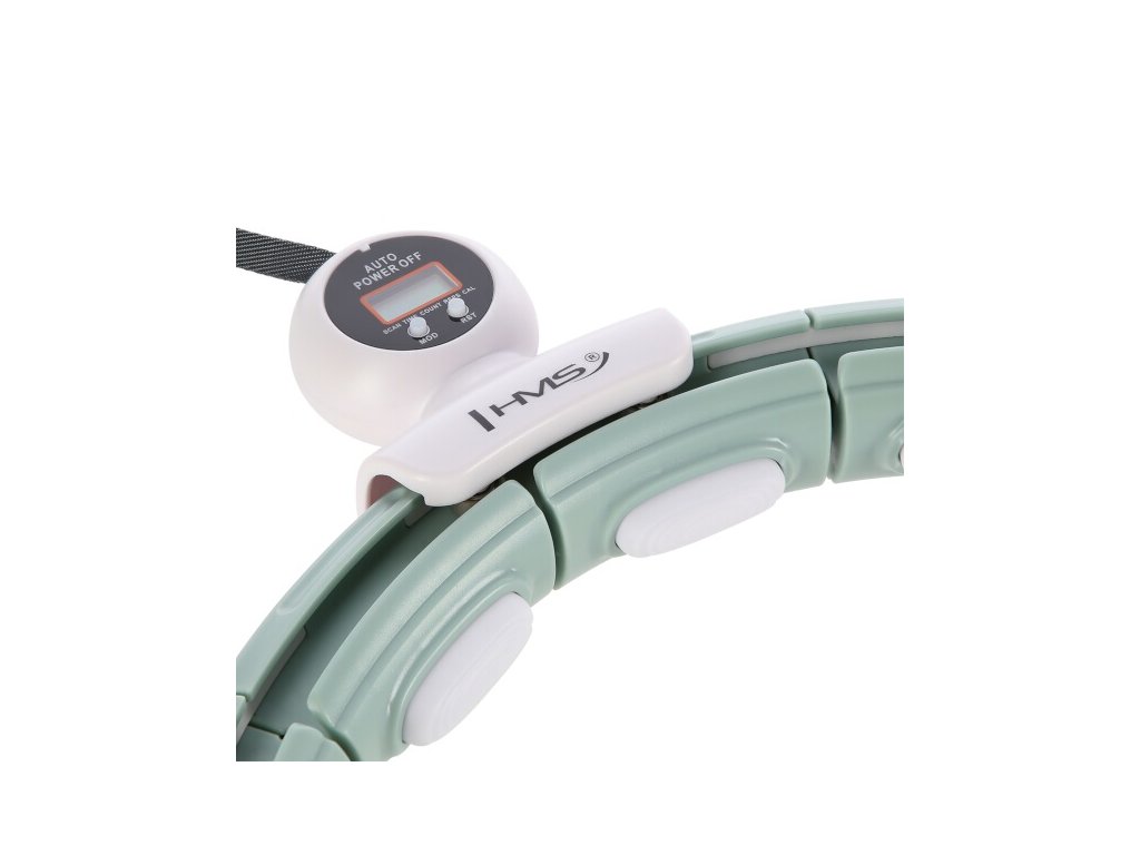 HMS HHM15 je obruč s nastaviteľným obvodom, magnetickými masážnymi výstupkami, rotačným závažím a počítadlom.