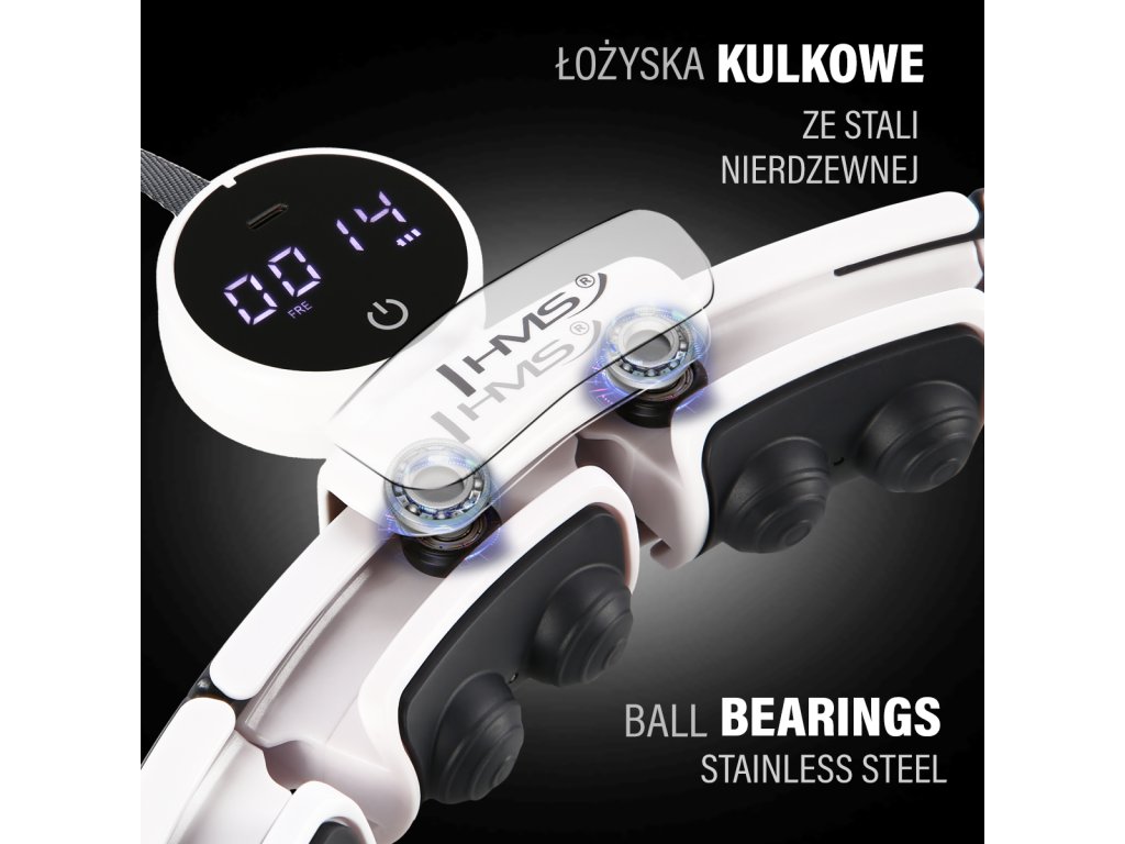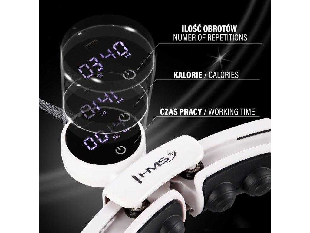 HMS HHM16 je skladacia hula hoop s nastaviteľným obvodom, masážnymi výstupkami s mahnetmi a šikovným, digitálnym, displejom doplnený o rotujúce závažie. Umožňuje simultánny tréning a 360-stupňovú magnetickú masáž pása. Počítač nabíjaný pomocou USB-C konenkoru zaisťuje presné meranie parametrov počas tréningu. Až 32 magnetov vám umožní naplno využiť výhody magnetického poľa, ktoré má pozitívny vplyv na váš metabolizmus a urýchľuje spaľovanie tukov. Vďaka nastaviteľnému obvodu HHM16 pri cvičení nikdy nespadne! V sete so zoštíhľujúcim pásom BR163 PLUS SIZE dosiahnete vysnívanú postavu ešte rýchlejšie.
