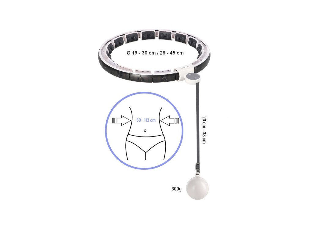 HMS HHM16 je obruč s nastaviteľným obvodom, magnetickými masážnymi výstupkami, rotačným závažím a prehľadným, ľahko čitateľným počítadlom.
