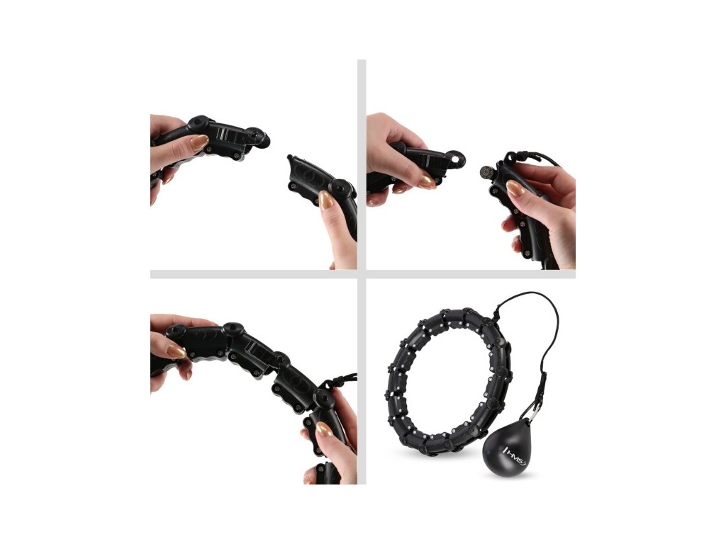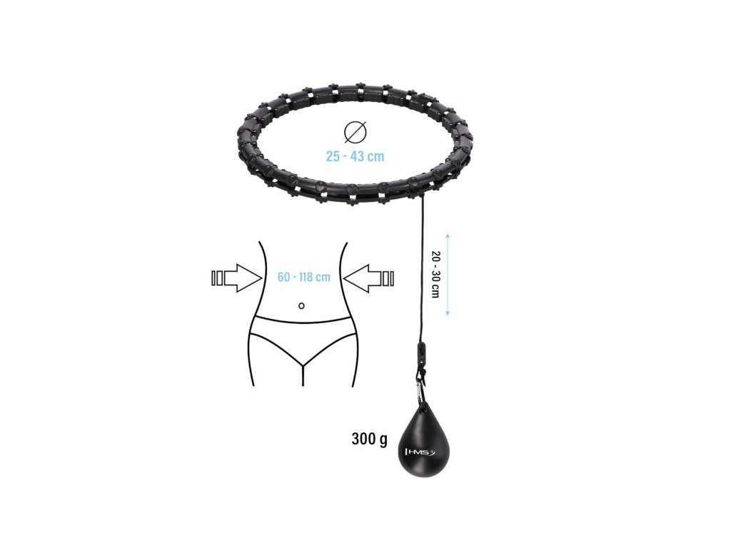 HMS HHW02 je obruč s nastaviteľnou dĺžkou, masážnymi výstupkami a rotačným závažím.