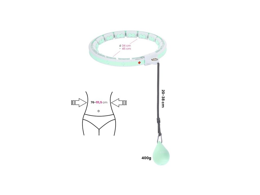 Dĺžka obruče sa nastavuje podľa obvodu vášho pása tak, aby bola dostatočne voľná, ale zároveň vám neprepadávala cez boky. Po nastavení dĺžky sa obruč zaistí na mieste pomocou zapínania vybaveného páčkou na ovládanie zámku. Potom sa závažie "hodí" v smere, v ktorom budeme krútiť bokmi, a začneme cvičiť. Obruč HHW06 je z vnútornej strany vybavená masážnymi výstupkami s pružinami, ktoré tlmia vibrácie od pohybujúcej sa kotvy a zároveň príjemne masírujú oblasť pása. Intenzitu tréningu ovplyvňuje dĺžka šnúry a rýchlosť, akou krútime bokmi.