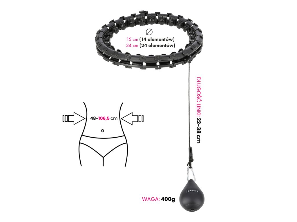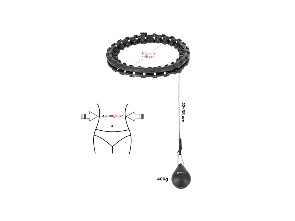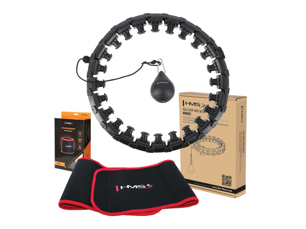 HMS HHW01 je obruč s nastaviteľnou dĺžkou, masážnymi výstupkami a rotačným závažím.