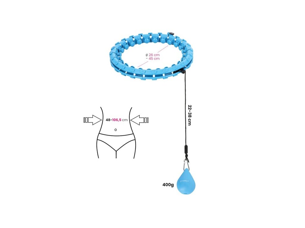 HMS HHW01 je obruč s nastaviteľnou dĺžkou, masážnymi výstupkami a rotačným závažím.