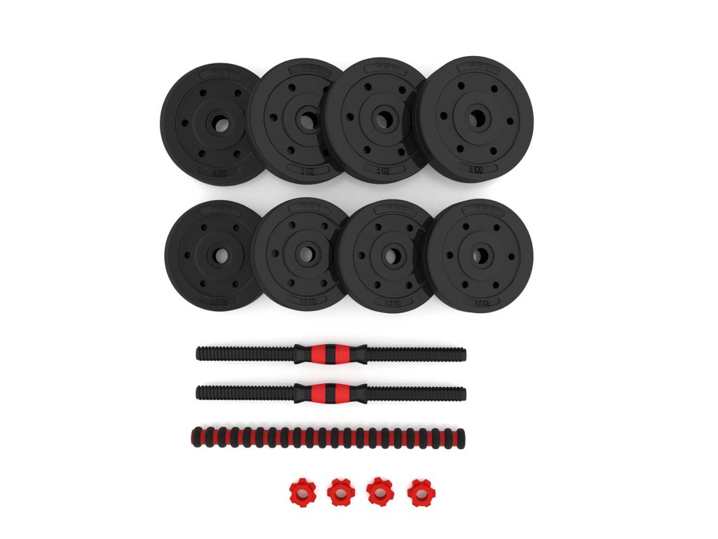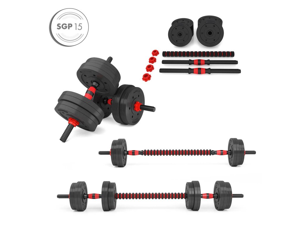 Kompletná nakladacia súprava dvoch jednoručných a jednej obojručnej činky s celkovou hmotnosťou 15 kg, to je HMS SGP15. Nakladacie činky sú klasickým vybavením každej domácej posilňovne.