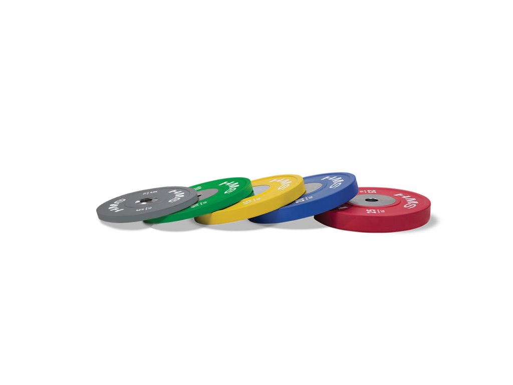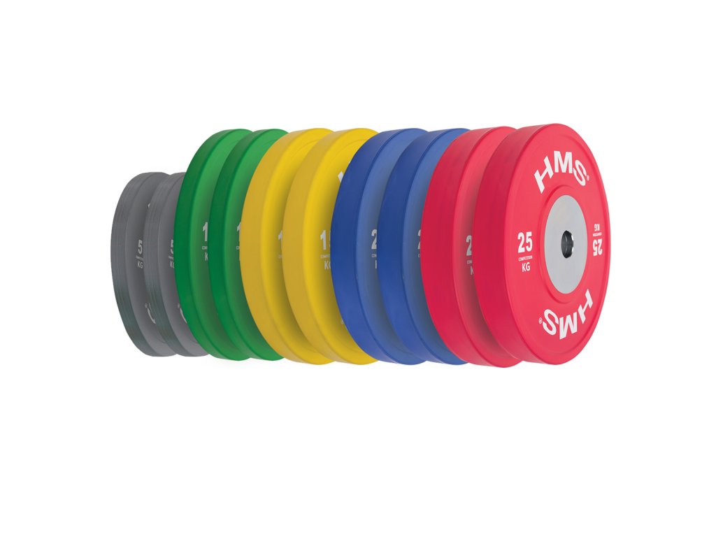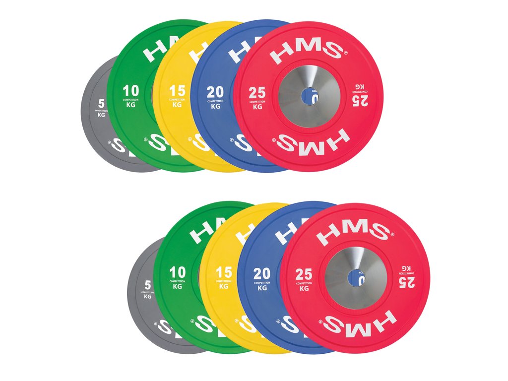Sada oympijských kotúčov HMS vhodných na súťaže vo vzpieraní a funkčný tréning. Táto súprava je farebná presne podľa pretekárskych štandardov. Jeho hlavným parametrom je odolnosť, keď aj po hodení z veľkej výšky zostávajú disk a podložka bez známok poškodenia. Kotúč je určený pre olympijské osi s priemerom tŕňa 50 mm.