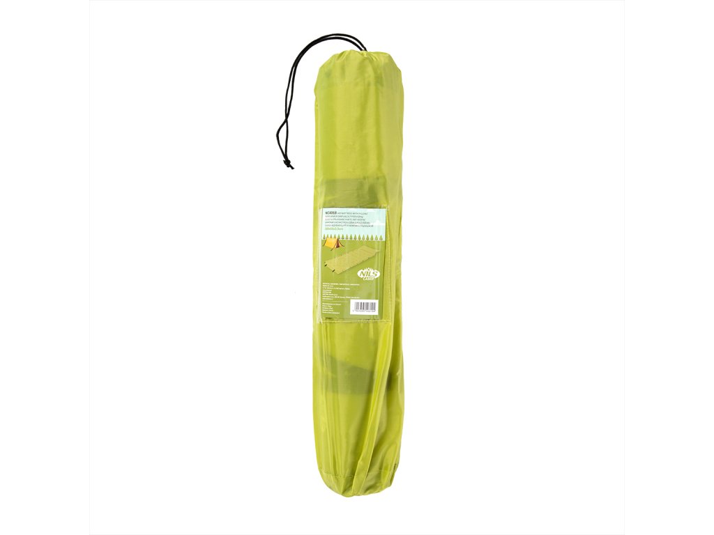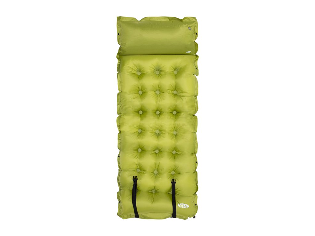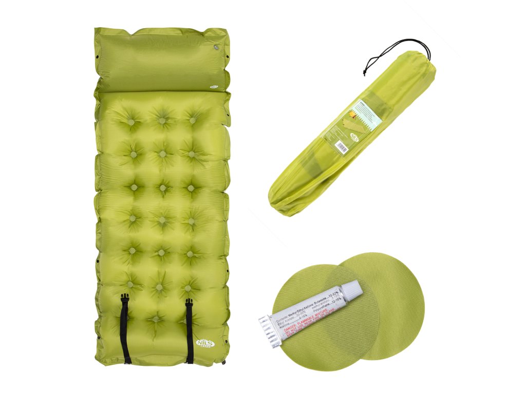 Samonafukovacia karimatka NILS Camp NC4018 zaistí kvalitný spánok počas kempovanie a dovoleniek pod stanom. Podložka je ale vhodná aj k vode a všade tam, kde si chcete príjemne poležať. Samonafouknutí zabezpečuje vnútorný, penový materiál s otvorenými pórmi. Po povolení ventilu do seba nasáva vzduch a dostáva sa tak do pôvodného stavu. Záverom je ešte potrebné podložku dofúknuť na požadovanú tvrdosť. Skladanie sa vykonáva otvorením ventilu a zrolovaním od opačnej strany, než je ventil. Karimatku potom zabezpečíme remienky s prackami a vložíme do dodávaného vaku. Na model NC4018 bol použitý veľmi odolný polyester 190T potiahnutý vrstvou PVC, táto kombinácia zabezpečuje vysokú odolnosť a karimatka sa dá položiť aj na nerovný povrch. Lemy karimatky sú opatrené cvoky, ktoré umožňujú spojiť viac matracov do jednej, veľkej plochy, toto sa hodí napríklad k vyplneniu podlahy v stane. Vankúšik nie je odnímateľný a oproti karimatke nie je vyplnený penou a je potrebné ho celý nafúknuť. Súčasťou balenia je aj opravná sada, ktorá sa hodí v prípade poškodenia.