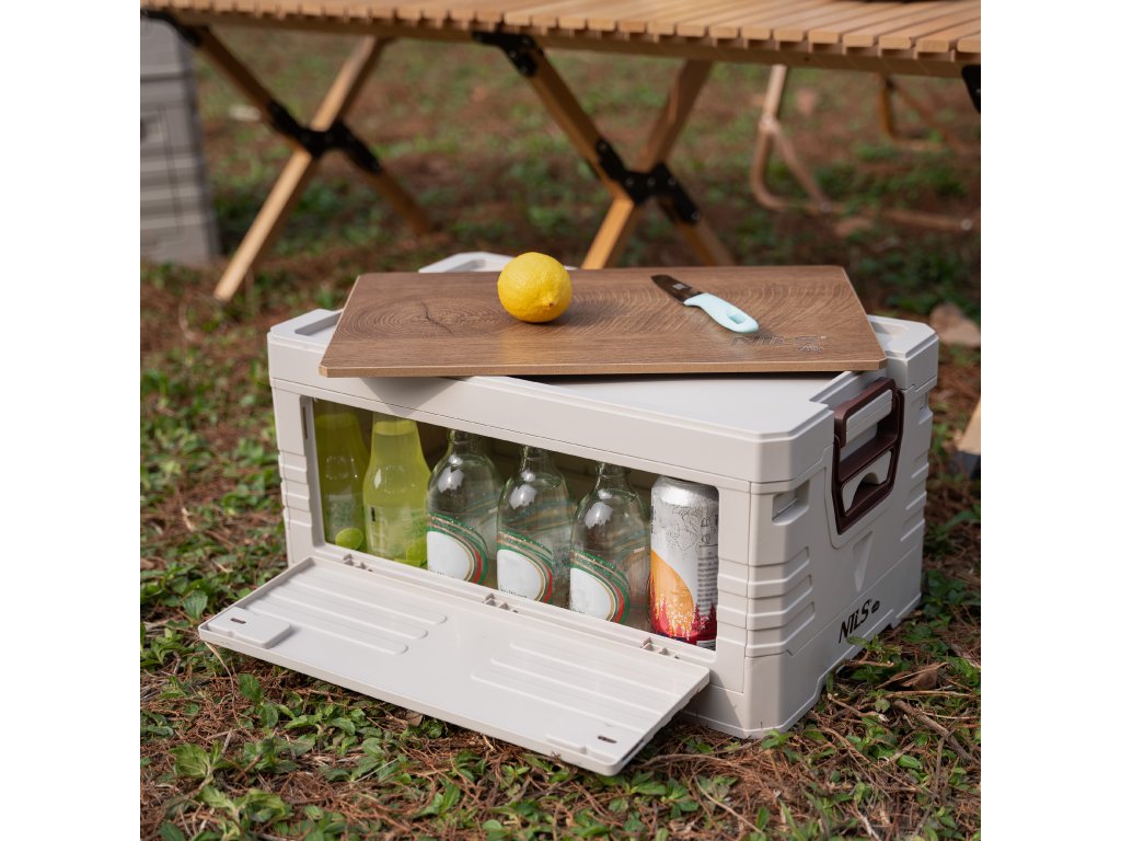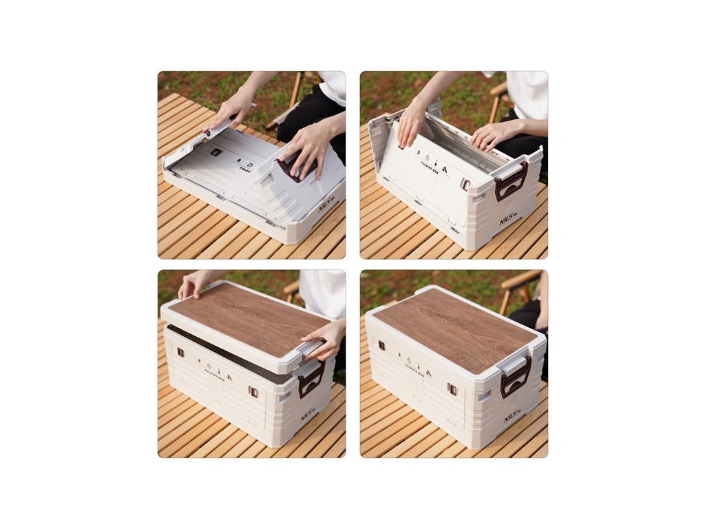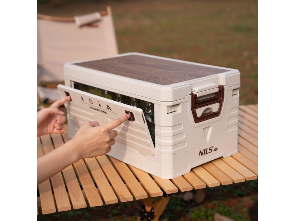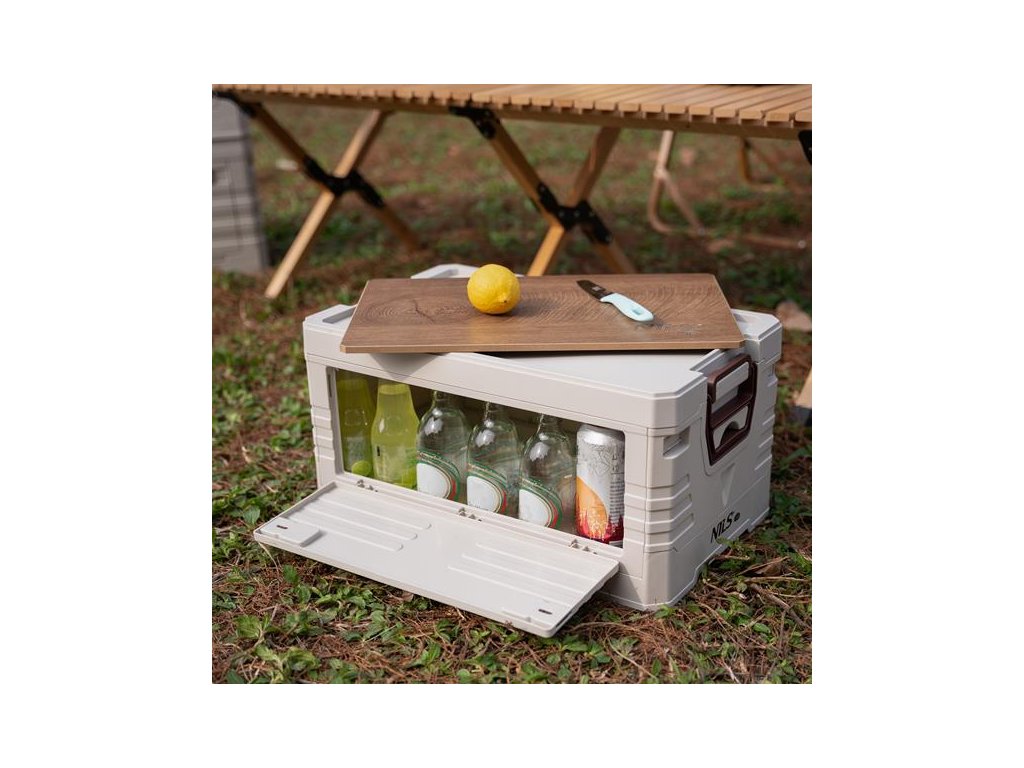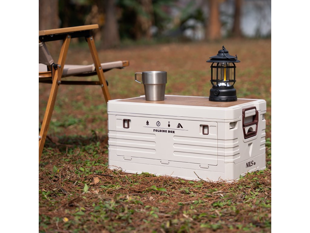 Skladací box NILS Camp NCB4002 2v1 s vekom a drevenou doskou 32L béžový