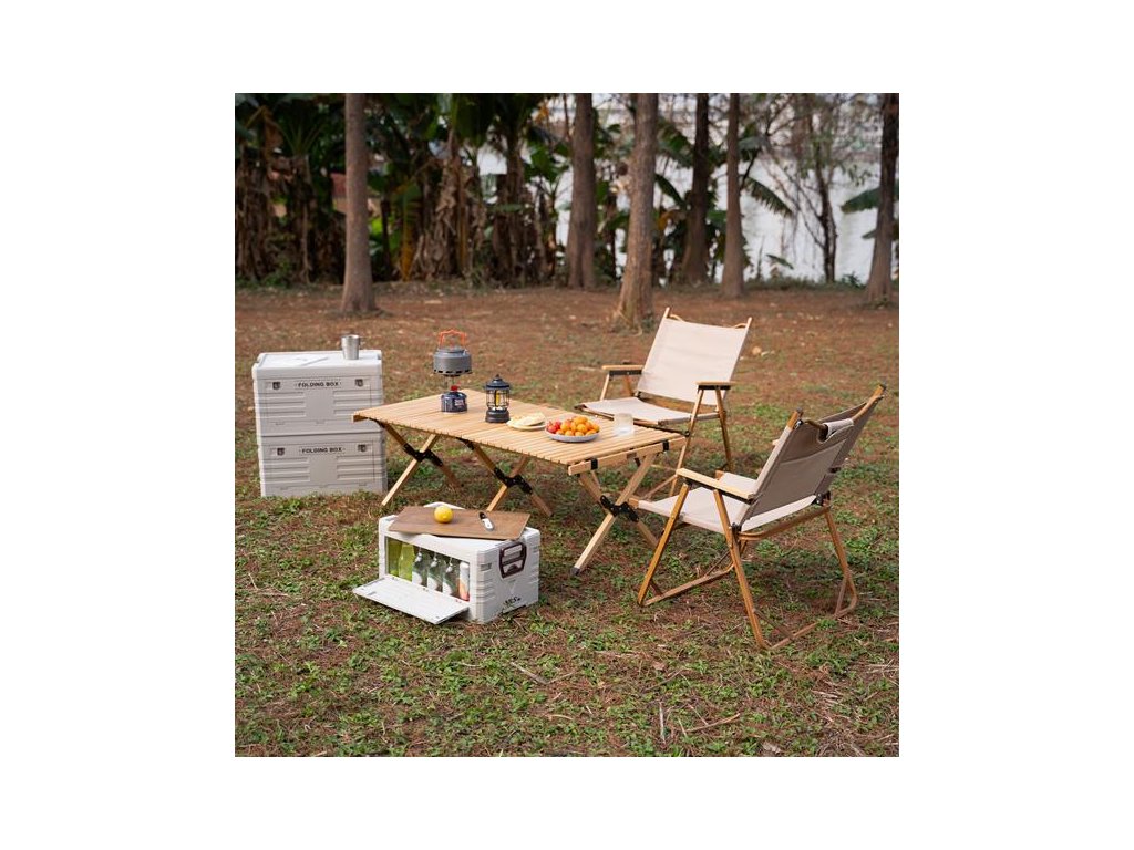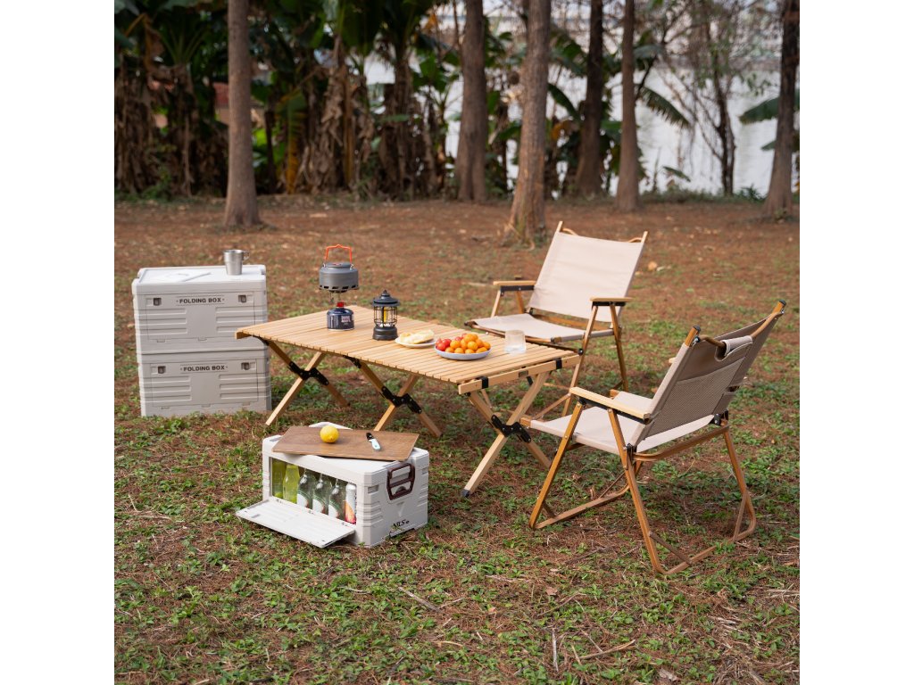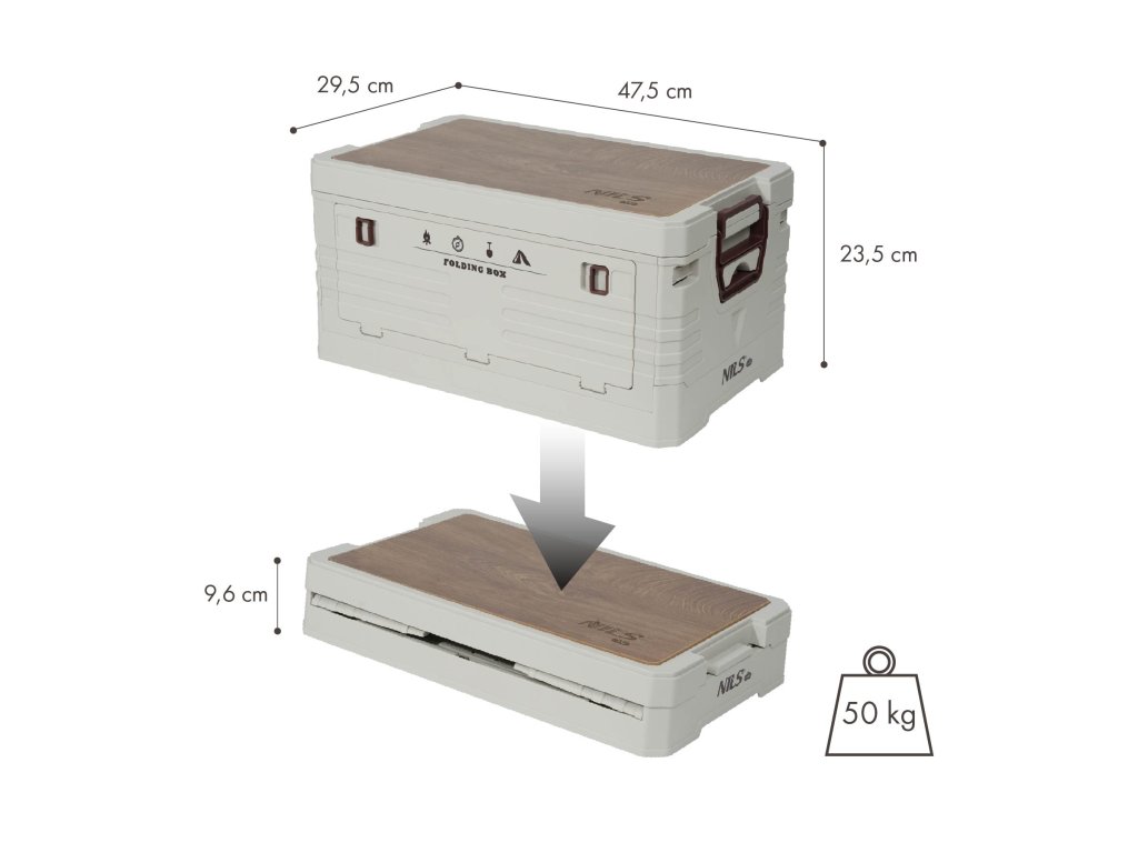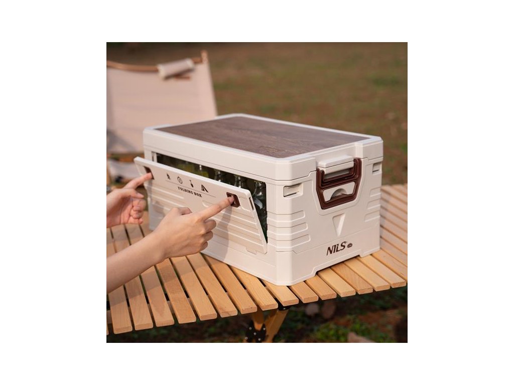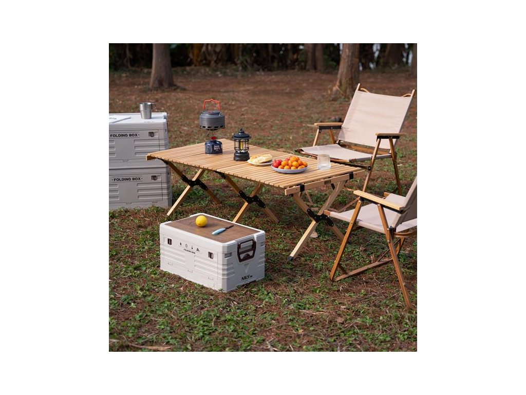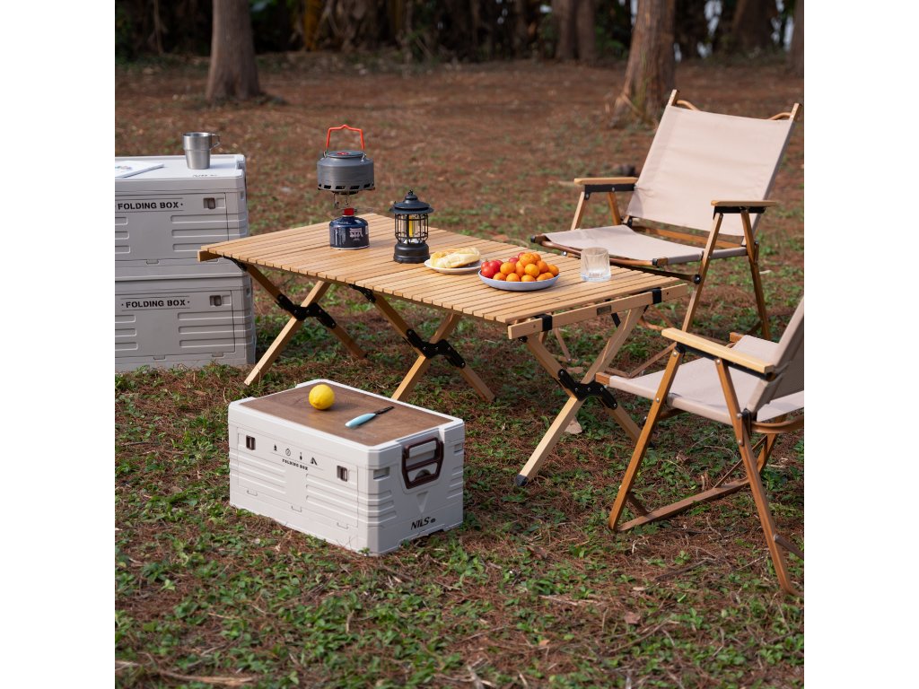 Skladací box NILS Camp NCB4002 2v1 s vekom a drevenou doskou 32L béžový