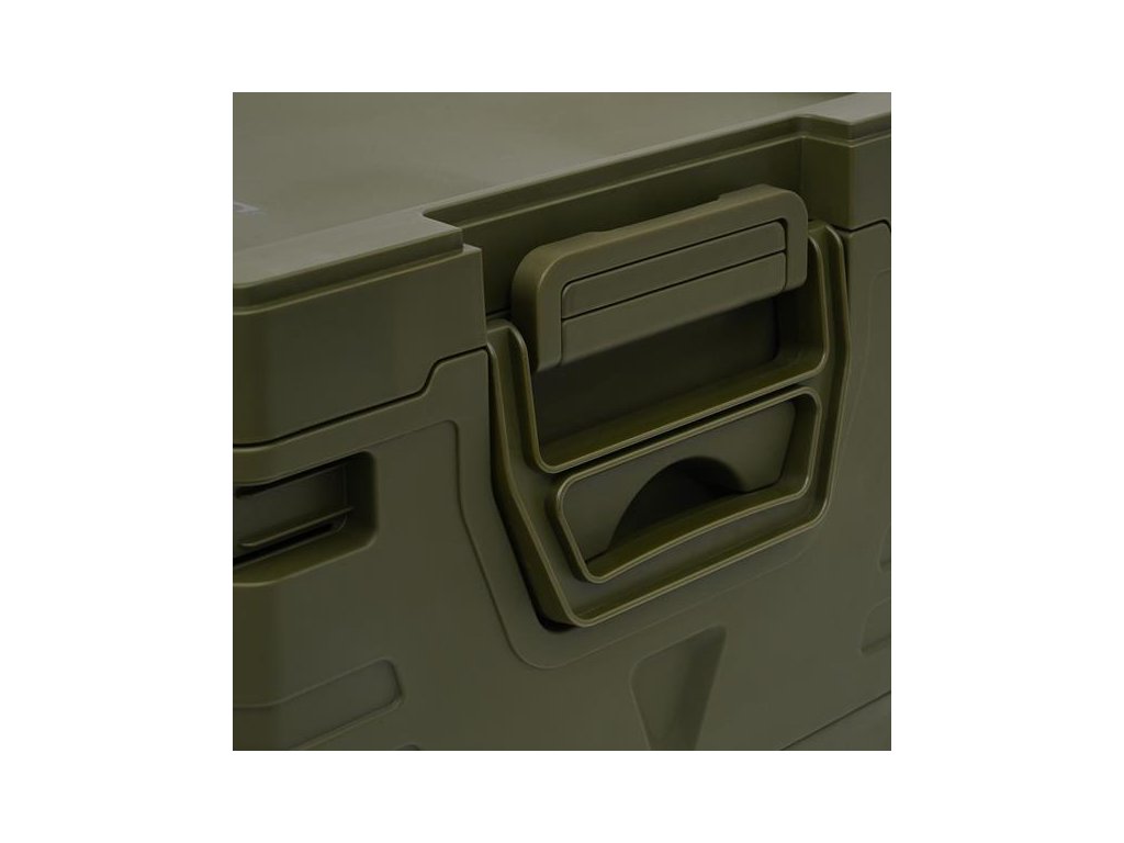 Box je vyrobený z polypropylénu (PP) odolného proti poškodeniu, je mimoriadne odolný a odolný proti poveternostným vplyvom. Vďaka pevným stenám a robustnej konštrukcii do neho je možné uložiť aj ťažšie predmety bez rizika deformácie. Je ideálnou voľbou pre domáce aj profesionálne použitie, napríklad v dielňach alebo dopravných firmách.