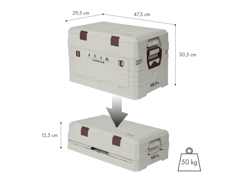 - Rozmery zloženého boxu: 47,5 x 29,5 x 15,5 cm