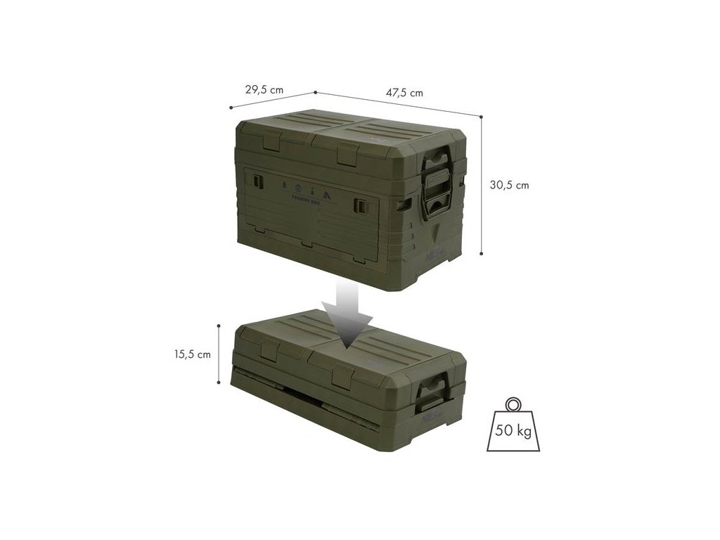 - Rozmery zloženého boxu: 47,5 x 29,5 x 15,5 cm