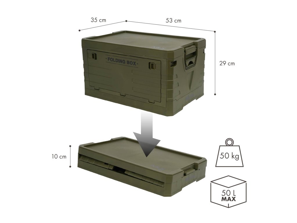 - Rozmery zloženého boxu: 53 x 35 x 10 cm