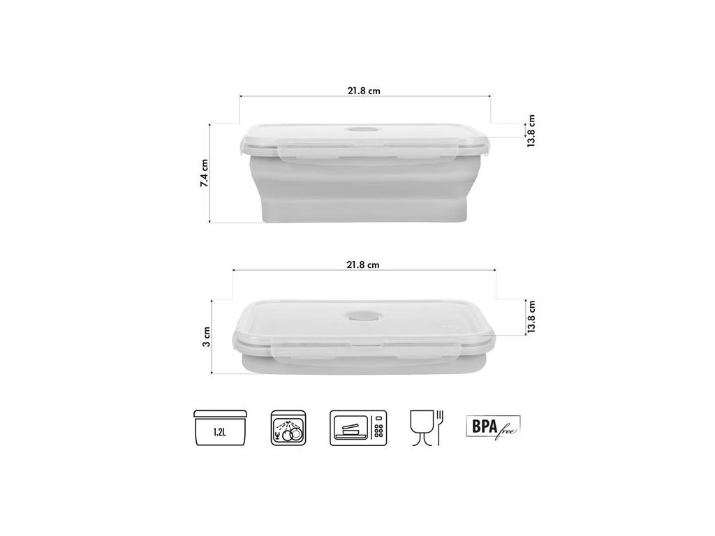 Krabička je vyrobená z potravinárskeho silikónu, viečko z polypropylénu, lunchbox spĺňa prísne európske bezpečnostné normy potvrdené certifikátom LFGB. Absencia BPA zabezpečuje, že je produkt bezpečný pre zdravie – aj pri pravidelnom ohrievaní jedla. Silikón neabsorbuje pachy a ľahko sa čistí, a dobre uzavreté tesniace viečko zabraňuje preliatiu obsahu.