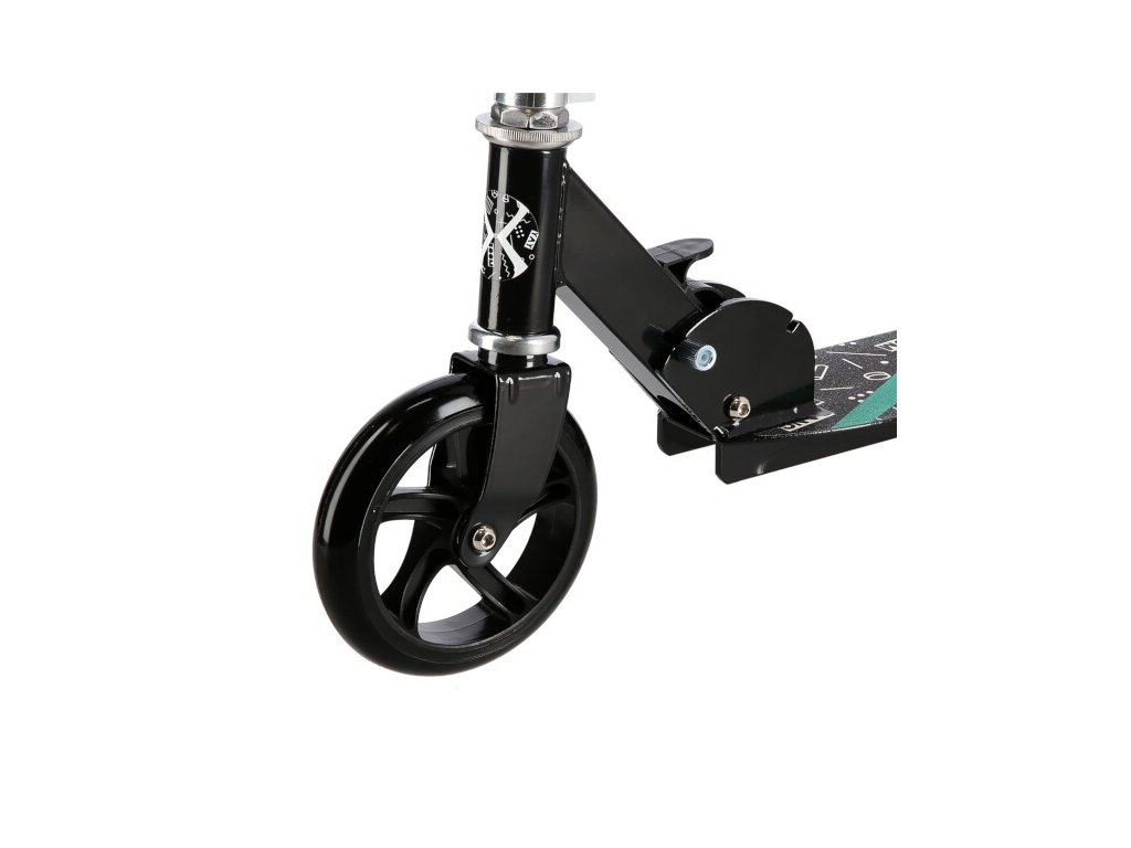 Riadidlá sú výškovo nastaviteľné v štyroch polohách (64,5 - 76 - 81,5 - 86 cm). Samotné rukoväte (riadidlá) sú gumové pre bezpečné uchopenie. Riadidlá sa dajú vysunúť a zložiť, aby sa ušetrilo miesto, správna poloha riadidiel je zaistená poistným kolíkom. Kolesá s priemerom 145 milimetrov a ložiská ABEC 5 zabezpečujú pohodlnú jazdu. Kolesá sú bezdušové, polyuretánové.