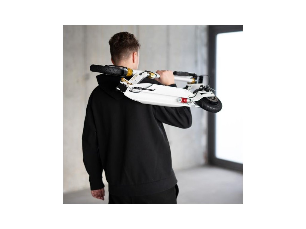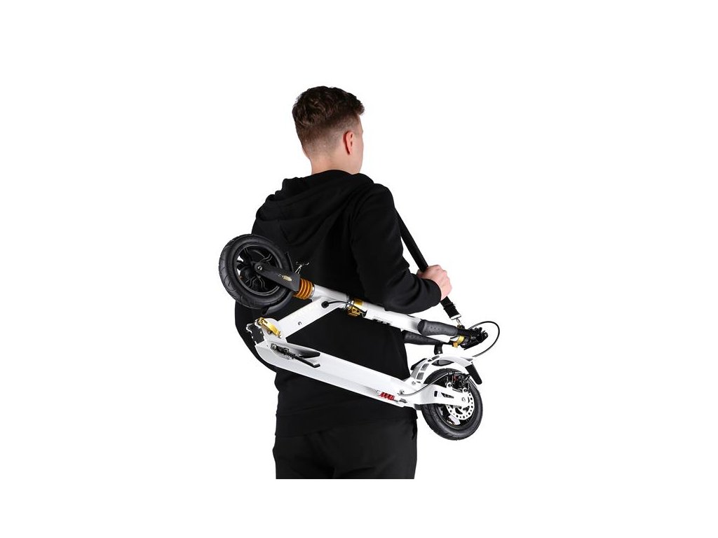 Kolobežka HM209T má odnímateľný ramenný popruh, ktorý je súčasťou dodávky, vďaka čomu sa veľmi ľahko prenáša, a jej kompaktné rozmery v zloženom stave uľahčujú prepravu a skladovanie. S kolobežkou nie je problém cestovať napríklad v autobuse alebo električke počas každodenného dochádzania do práce. Kolobežka HM209T sa tiež ľahko zmestí do batožinového priestoru auta, kde nezaberie veľa miesta a môžete si ju vziať so sebou napríklad na dovolenku alebo na chatu.
