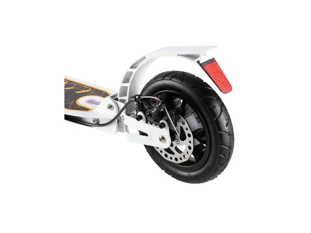 Kolobežka NILS Extreme HM209T má zadné koleso vybavené kotúčovou a nožnou brzdou na okamžité zastavenie, čo z nej robí ideálnu voľbu na dynamickú jazdu v meste. Robustná hliníková plošina s rozmermi 61 x 15 cm je dostatočne priestranná pre obe nohy. Griptape zaisťuje vysokú priľnavosť obuvi. Model HM209T je navyše vybavený odrazkou na nášľapnej brzde, vďaka ktorej sme po zotmení viditeľní už z diaľky, čo výrazne zvyšuje našu bezpečnosť. Pre maximálnu bezpečnosť si vždy nezabudnite pribaliť prilbu a chrániče.