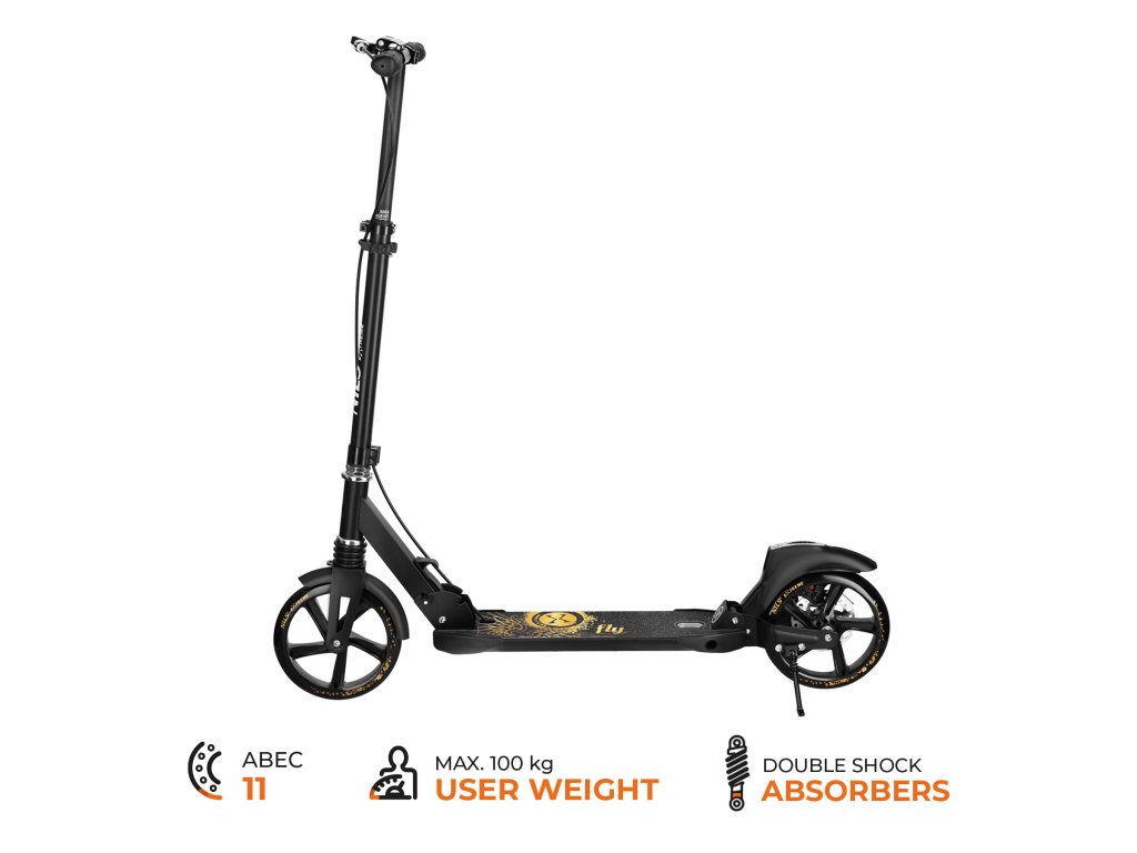 Kolieska s priemerom 200 mm umožňujú hladkú jazdu na asfalte, chodníkoch aj dlažbe. Odolná konštrukcia z kombinácie ocele a hliníka zvyšuje bezpečnosť a životnosť, pričom si kolobežka zachováva optimálnu hmotnosť.