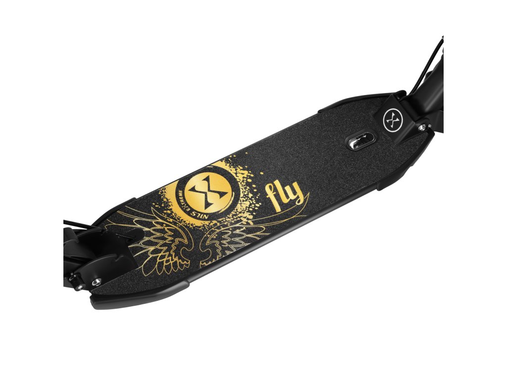 Verzia Fly zaujme elegantným prevedením a modernými grafickými detailmi, ktoré dodávajú kolobežke prémiový charakter. Dizajn je vizuálne zladený s prilbami a chráničmi z rovnakého produktového radu (predávajú sa samostatne).
