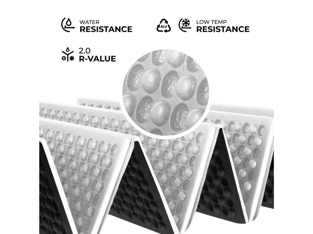 - Materiál: XPE (chemicky zosieťovaná polyetylénová pena), hliník